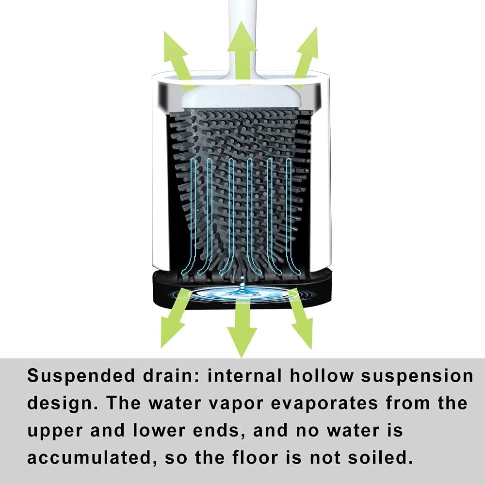 - Easily Clean Dead Corner: The flat silicone toilet brush head can be bent to fit the angle of the rim, reaching under the rim. The tip of the brush head is designed to clean the edge of the toilet bowl better by bending the brush head upward