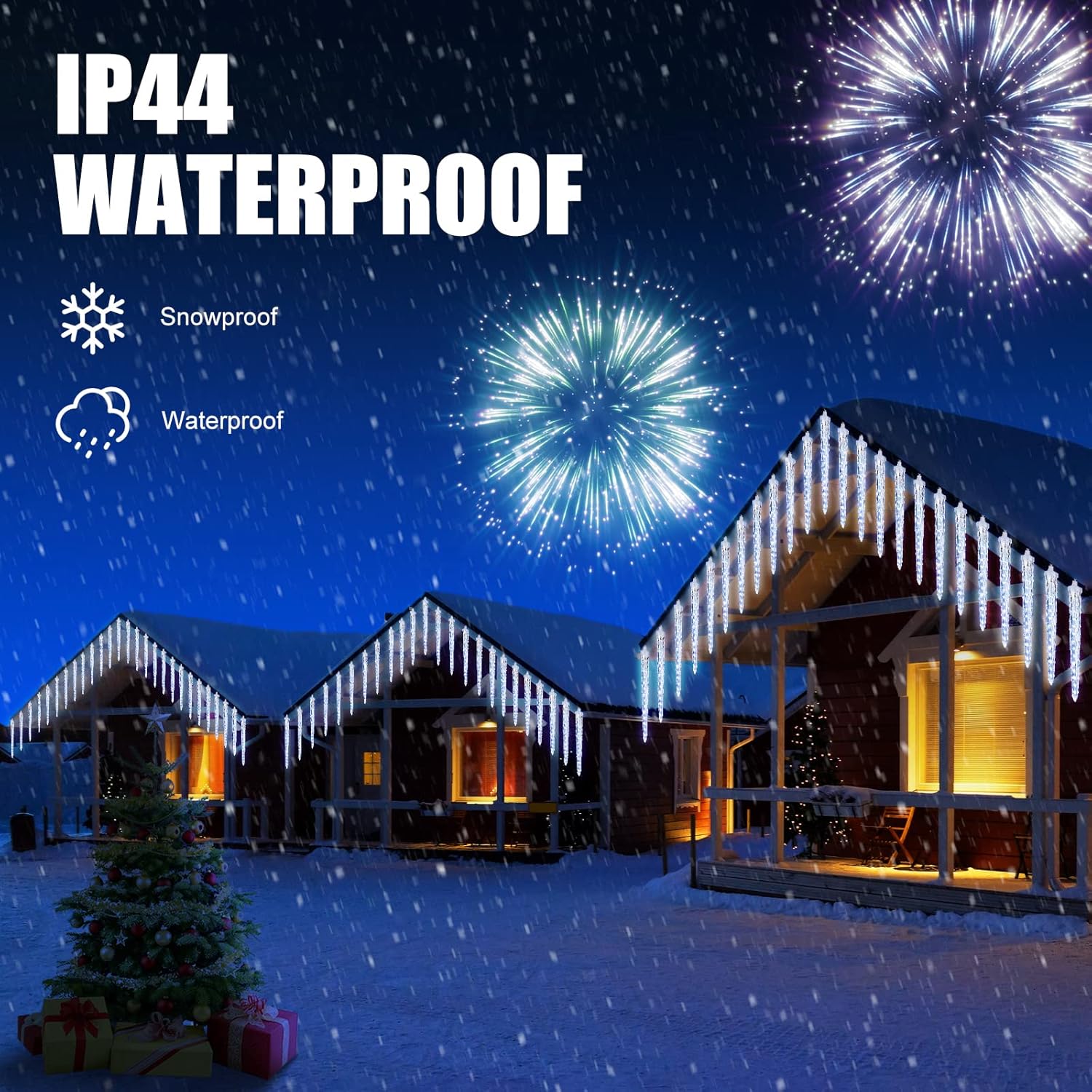 - 【Weatherproof and Flexible】Our icicle Christmas lights are waterproof with an IP44 rating; They can be easily installed with a gripper, cable tie, or cup hook and placed anywhere necessary, such as on a living room or window, weaved through flowers and trees, or strung along the wall or banisters. Note: The AC plug should be protected from rain when using outdoors.