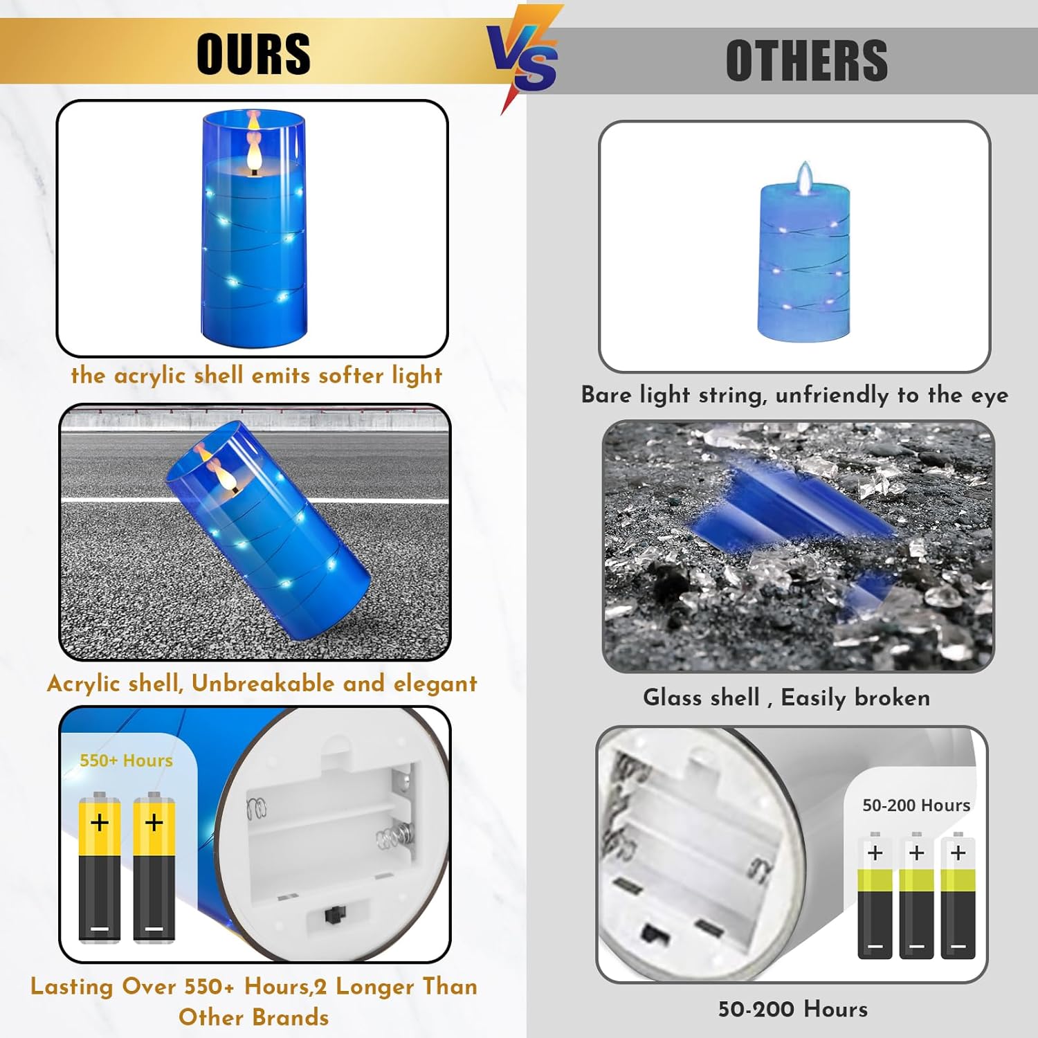 - 【Value Package】2 x battery operated candles((D3”xH6”), 1 x remote control, 1 x user manual. Each flickering candle requires 2 AA batteries (Not Included) which would last 500+hours.Unlike real candles, these decorative flameless candles are made to last; you buy them once,the flameless candle won't wear out, it will accompany you for life!