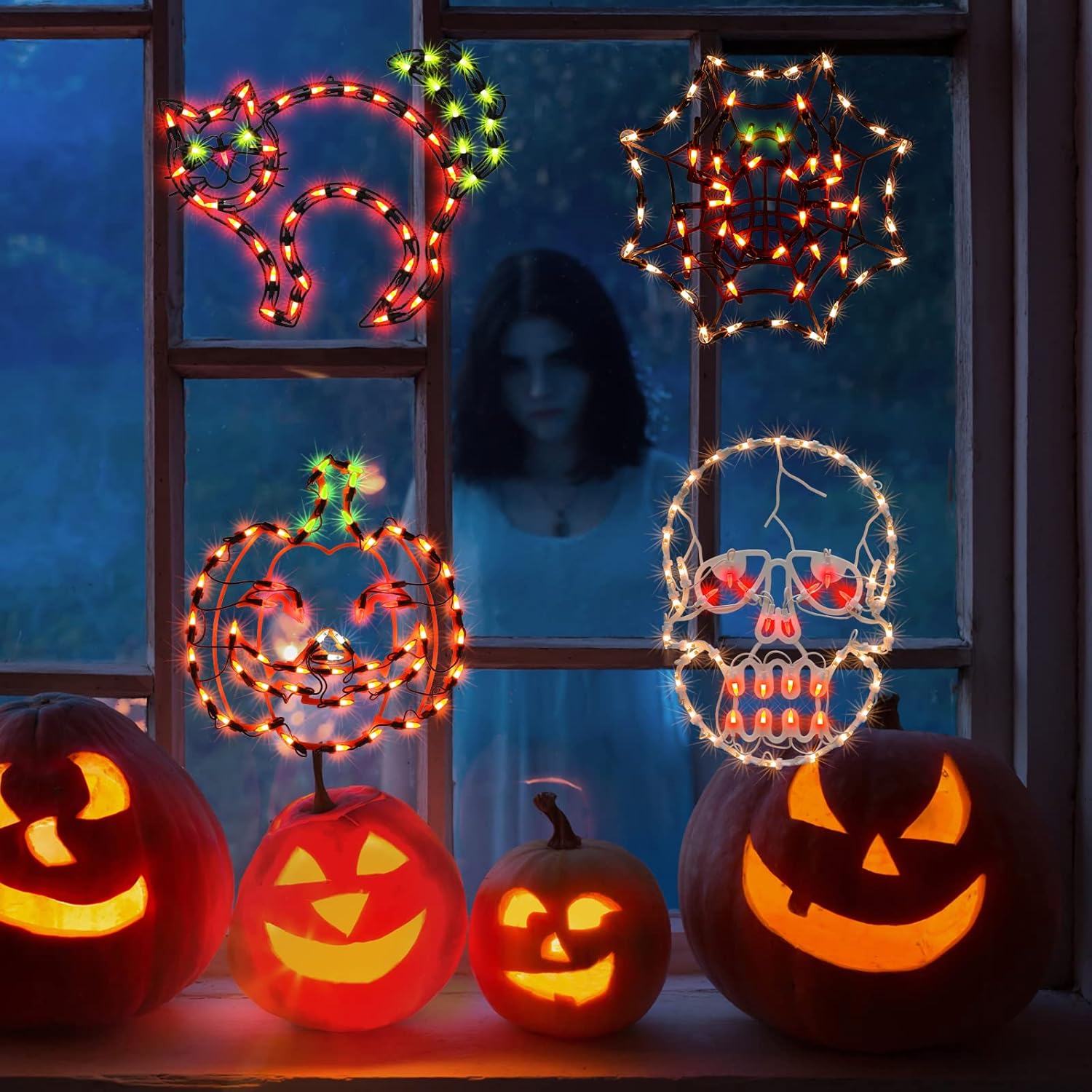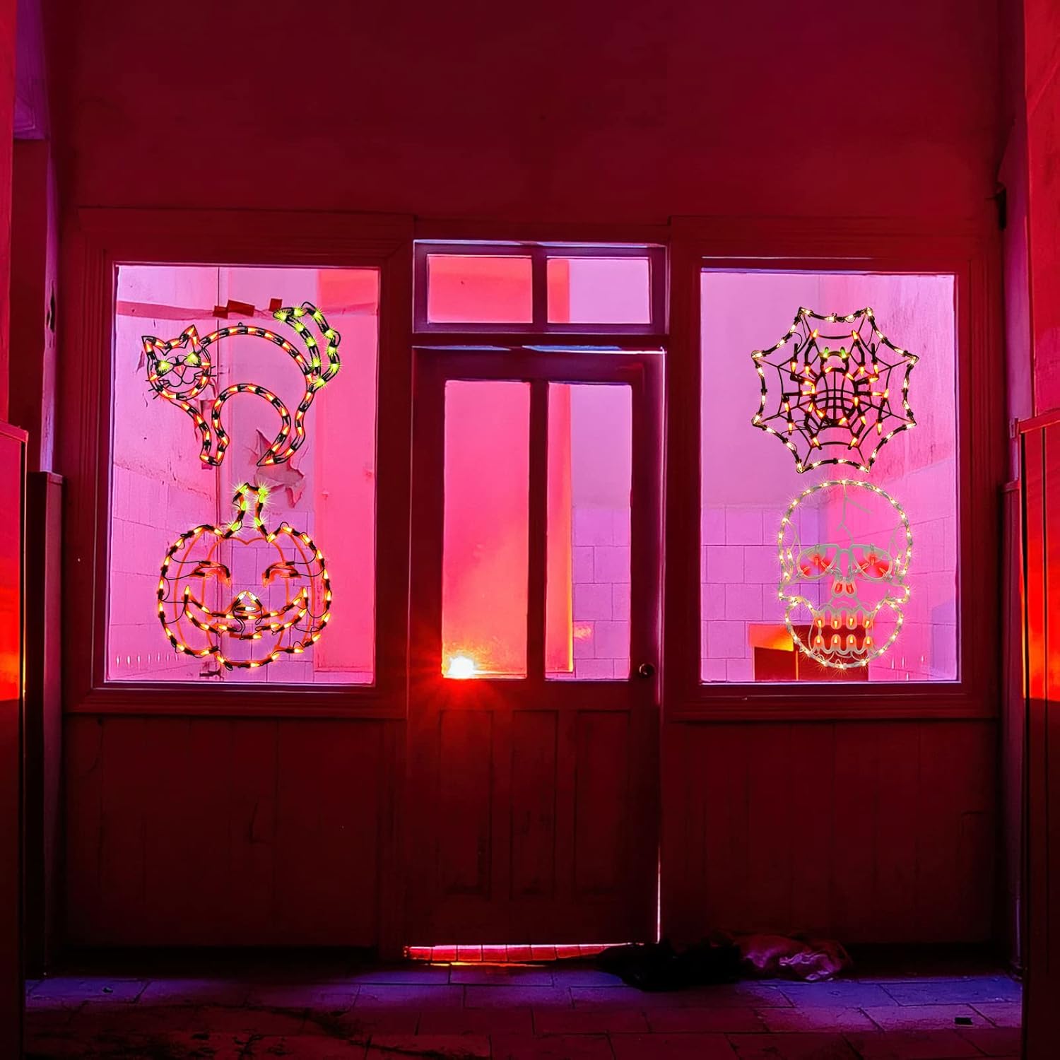 - Wide Applications: you can display the Cobweb, Jack-O-lantern,Cat and Skull window lights on window, wall, tree, fence or any other place indoor outdoor you want to decorate with good waterproof performance, ideal choices for haunted houses, Halloween party, theme party, Halloween scene and so on.