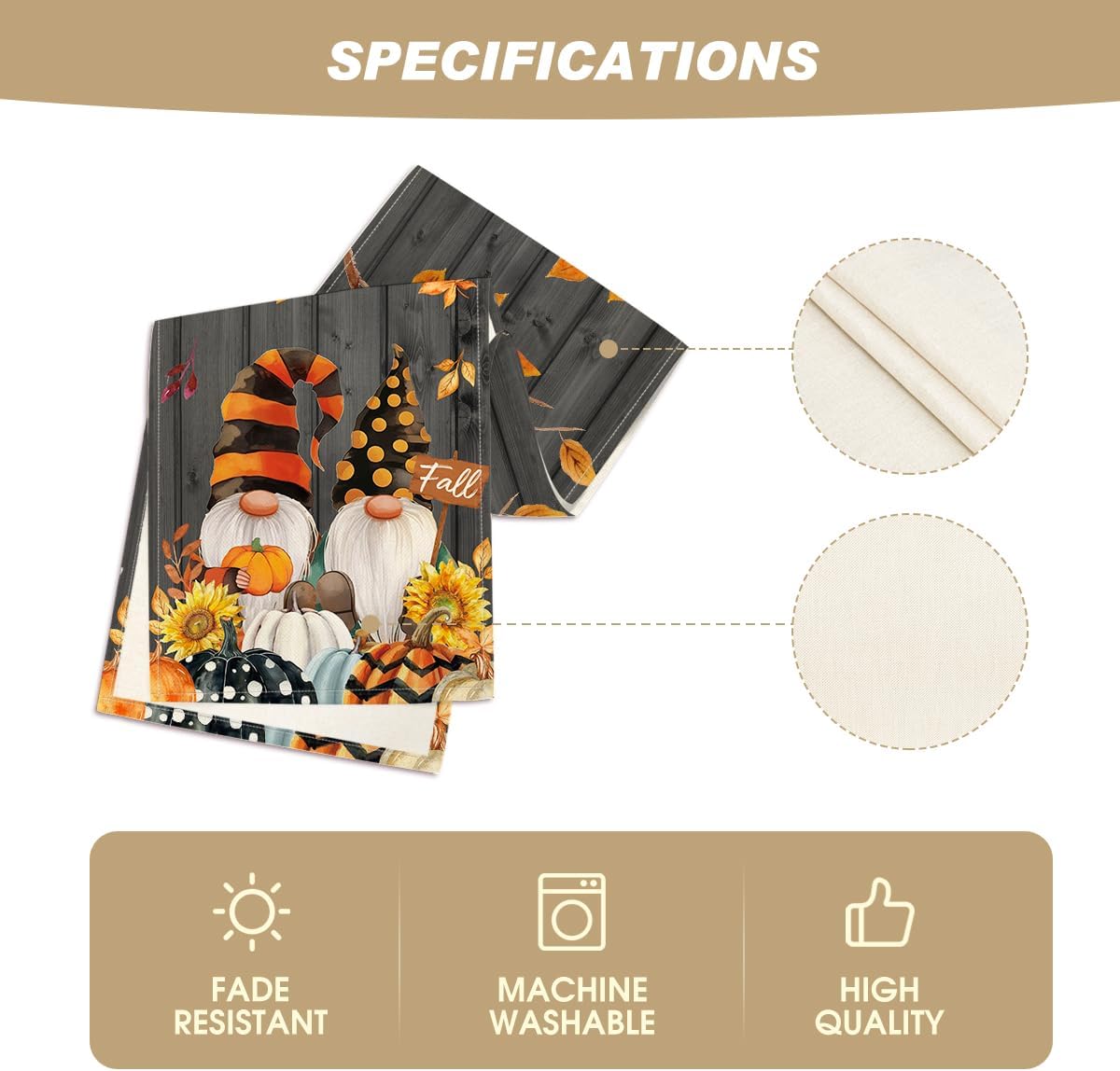 Artoid Mode Fall Gnomes Pumpkins Sunflower Maple Leaves Thanksgiving Table Runner, Seasonal Harvest Vintage Kitchen Dining Table Decoration for Indoor Outdoor Home Party Decor 13 x 48 Inch