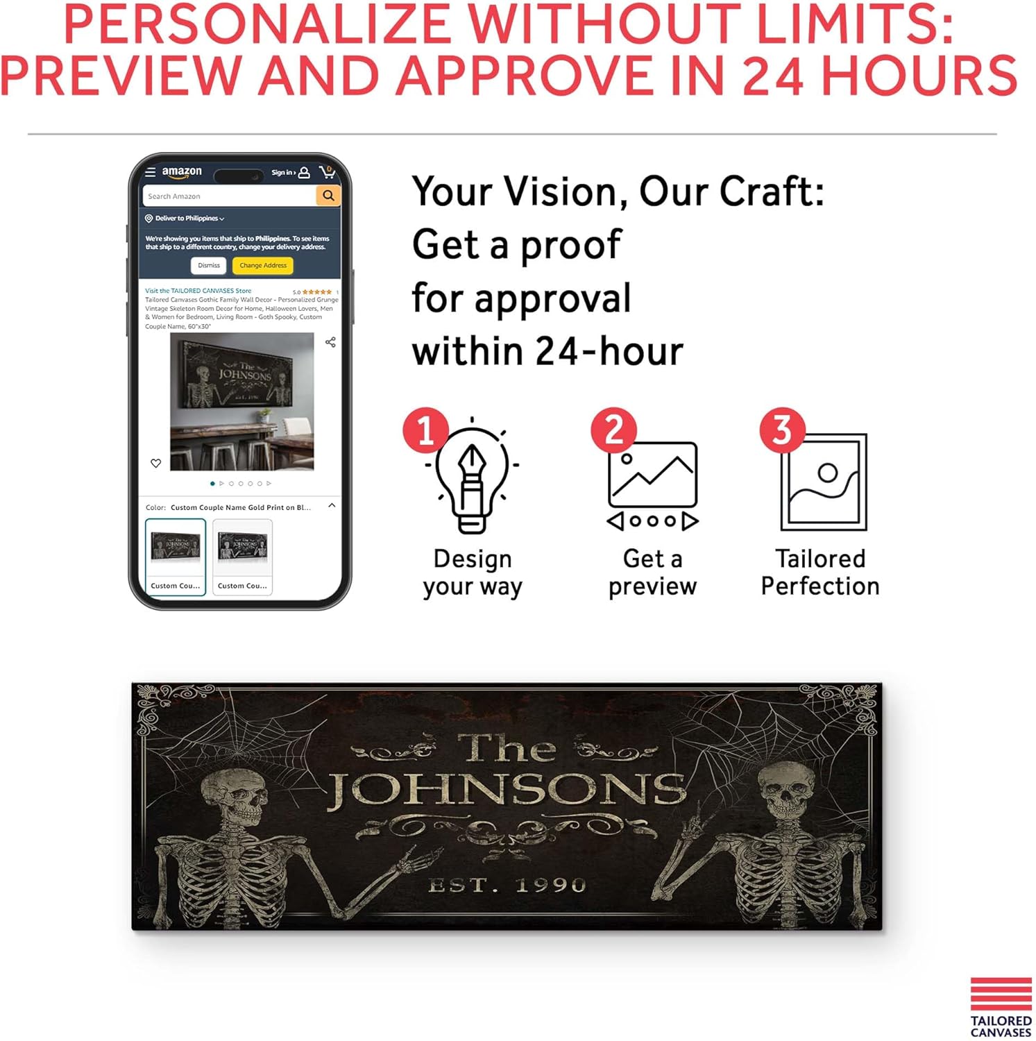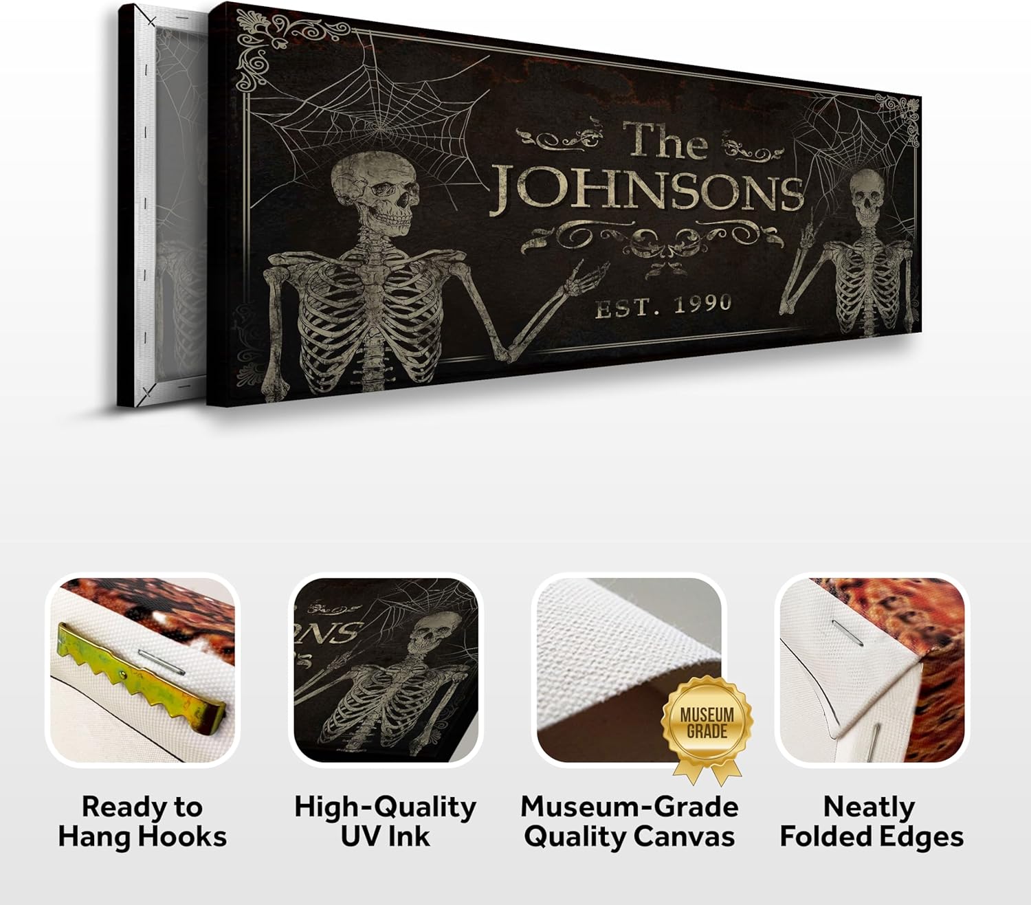 Tailored Canvases Gothic Family Wall Decor - Personalized Grunge Vintage Skeleton Room Decor for Home, Halloween Lovers, Men & Women for Bedroom, Living Room - Goth Spooky, Custom Couple Name, 36"x12"