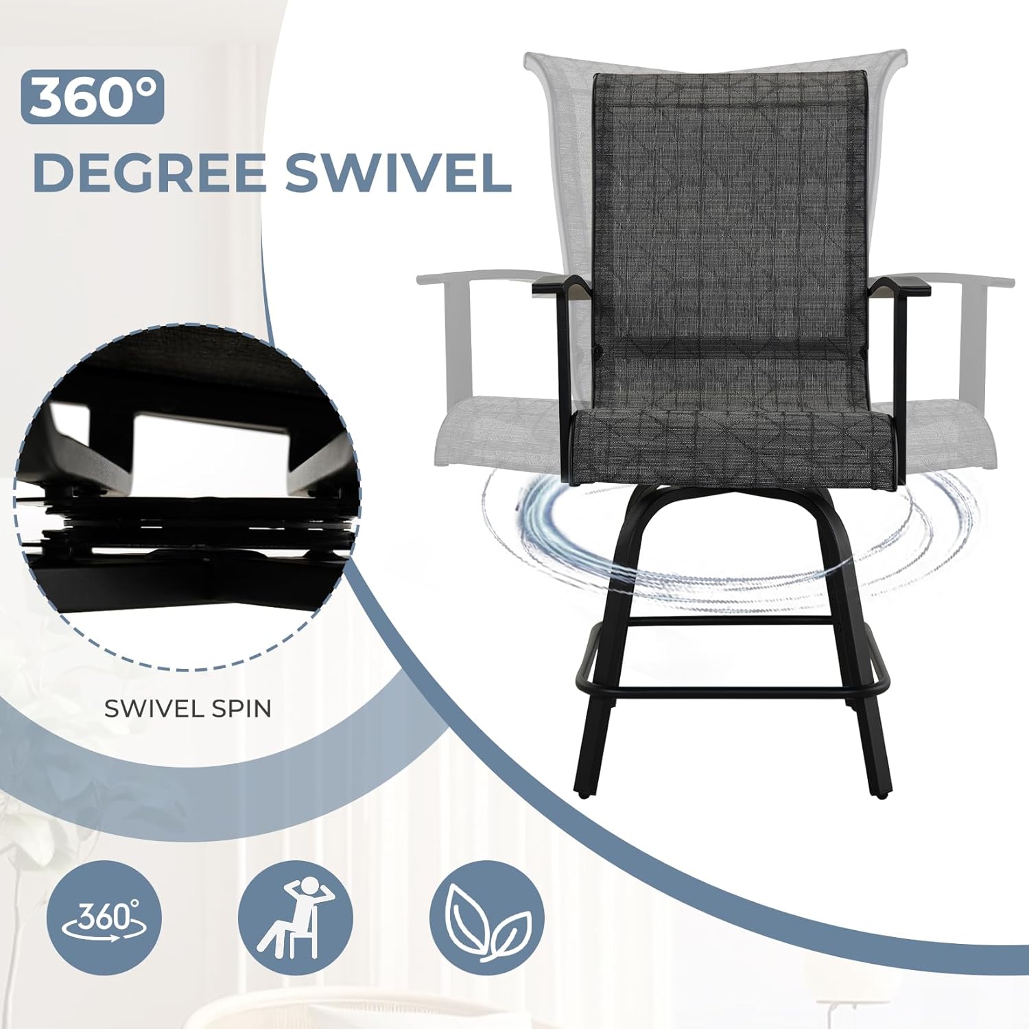 - FUNCTIONAL FEATURES: The balcony bar chair with 360° free rotation design, combined with the reinforced design of double support ribs at the bottom, can enjoy the outdoor scenery 360° freely