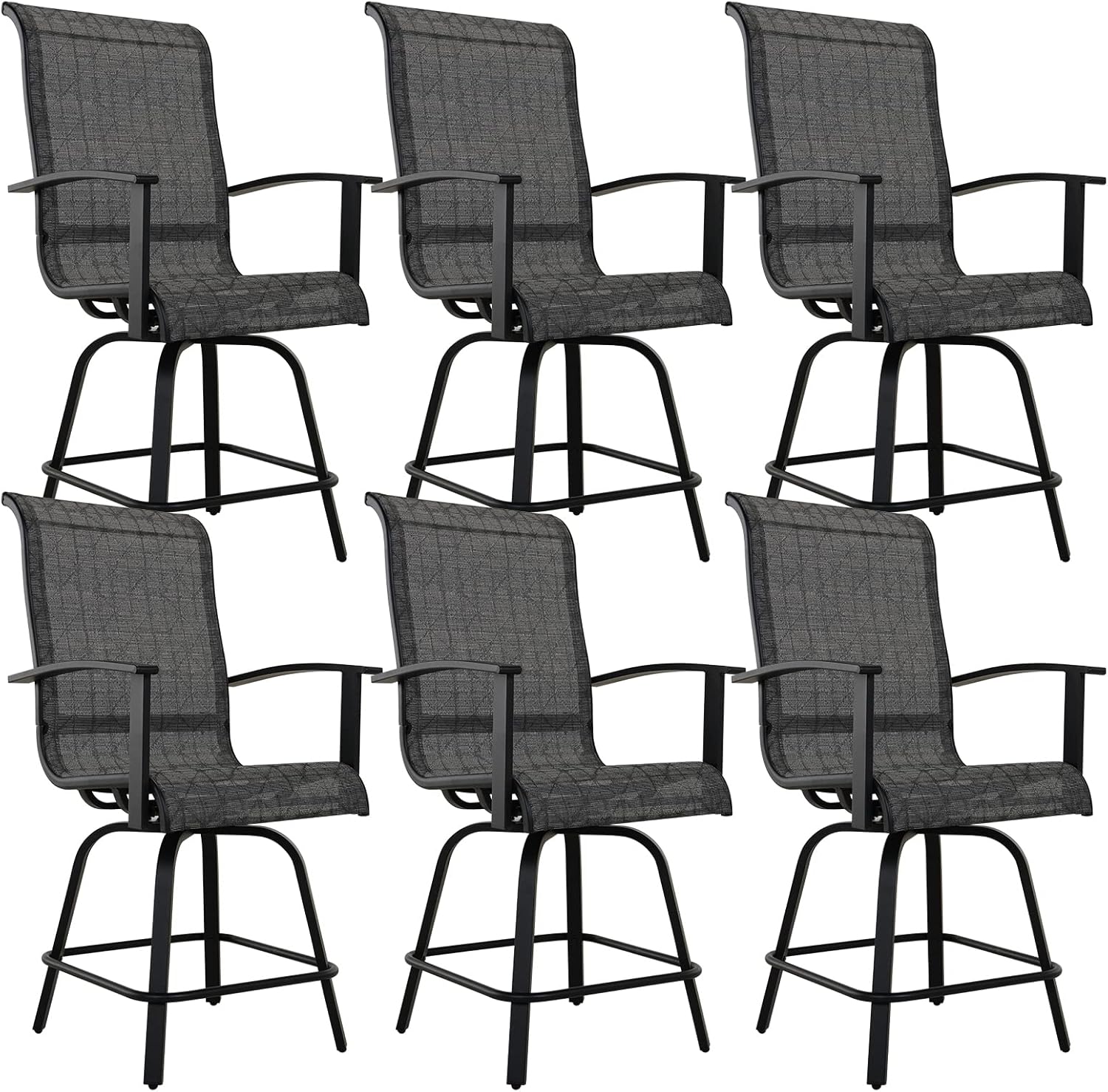 Grand patio Counter Height Swivel Bar Stools Set of 6, 24 Inch Height Patio Seating for BBQ Island Outdoor Kitchen Dining Stool Chair (Black & Grey Plaid, 6PC)