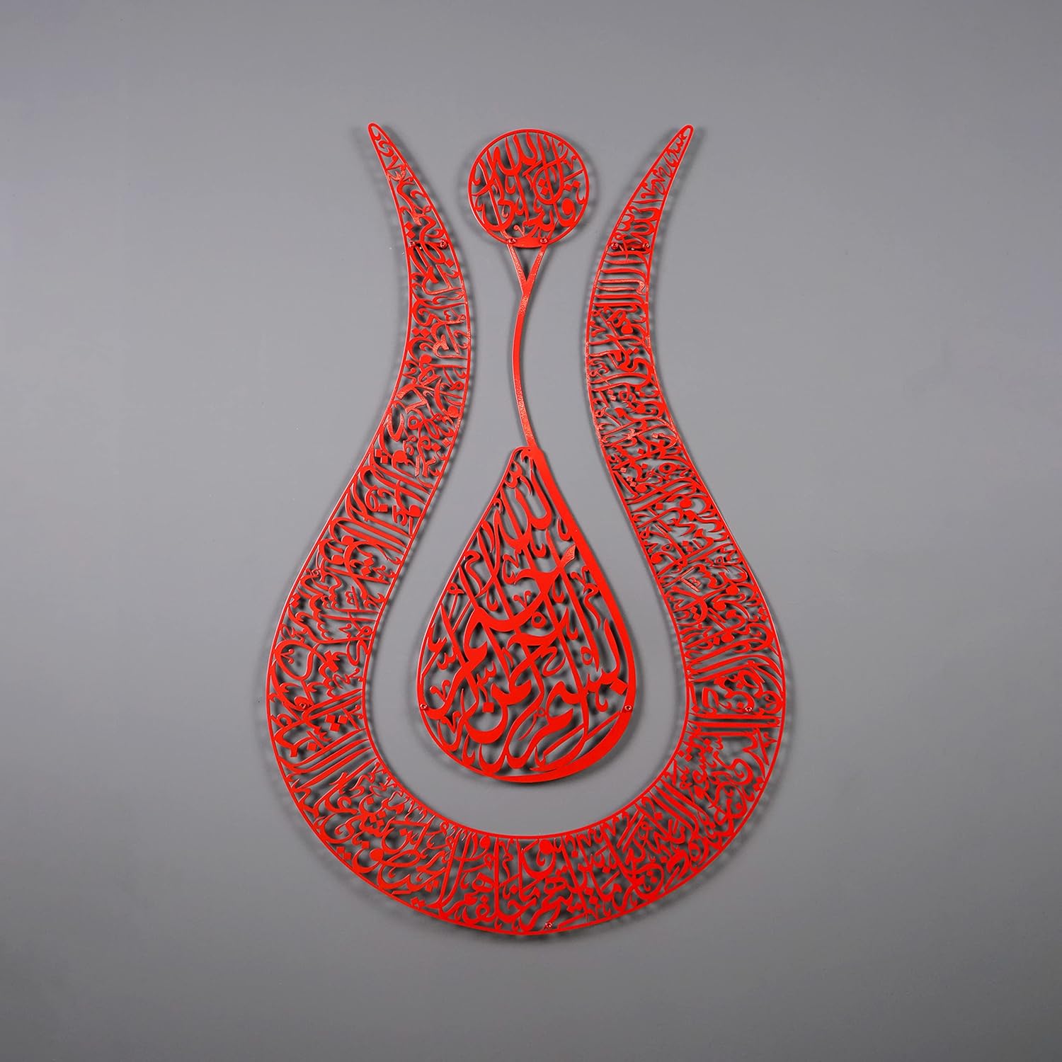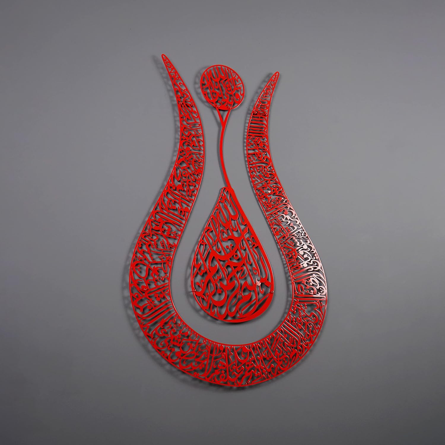 iwa concept Ayatul Kursi Tulip Shaped Metal Islamic Wall Art, Throne Verse Arabic Calligraphy Decor, Quran Decor Gift for Muslims at Ramadan and Hajj (90 x 57 cm | 36 x 22.8 inches, Full Red)