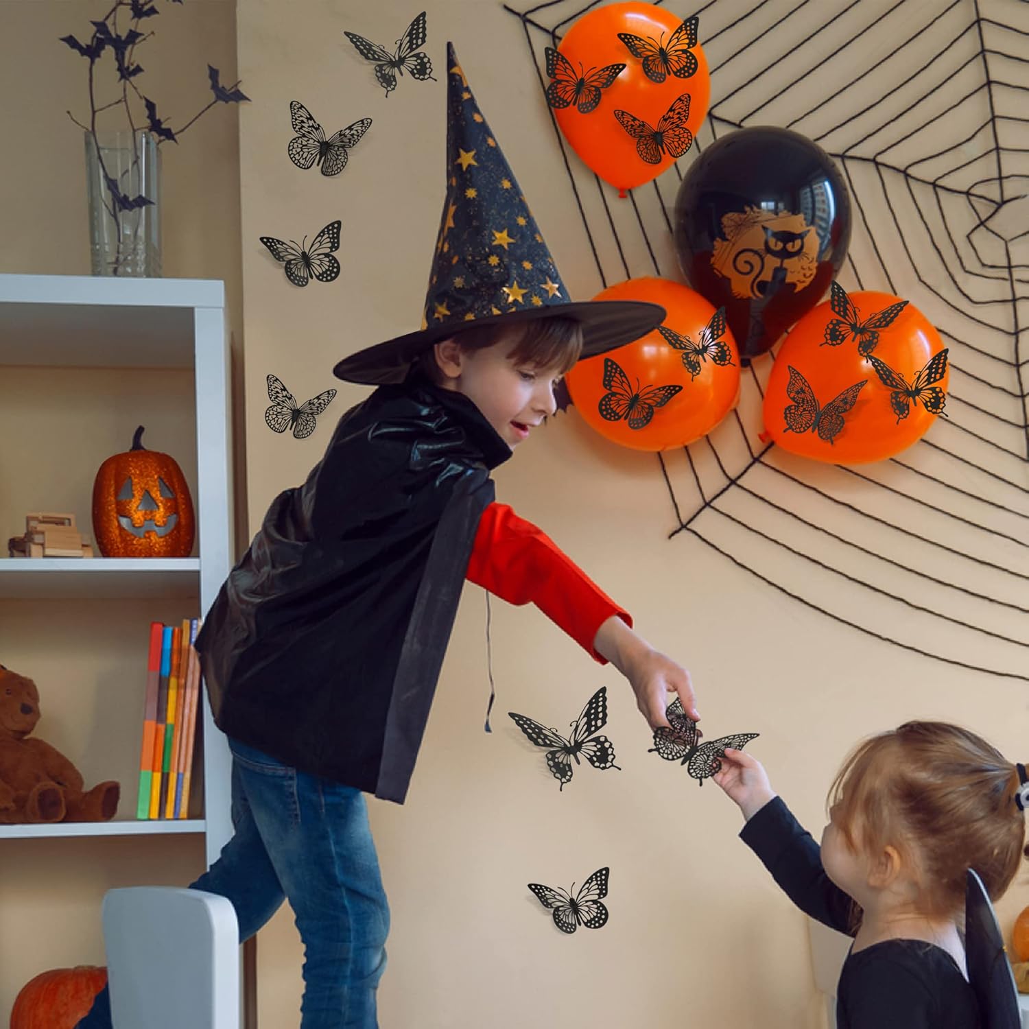 SAOROPEB 3D Butterfly Wall Decor 48 Pcs 4 Styles 3 Sizes, Gold Butterfly Decorations for Butterfly Birthday Decorations Butterfly Party Decorations Cake Decorations, Removable Stickers (Black)