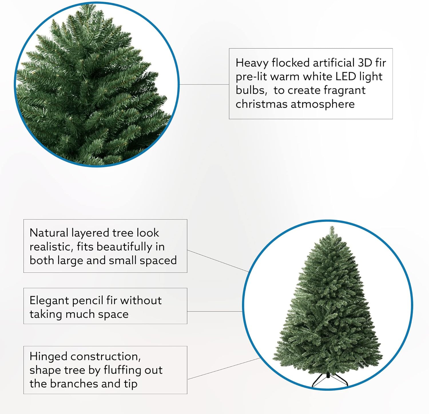 - LOOKS REALISTIC & FULL : Our 7.5 feet Pre Lit Christmas Tree comes with 1717 branch tips, 550 warm lights, and has a girth of 56 inches, which are unmatched for a 7.5ft Christmas tree. So with the Naomi Home Artificial Christmas Tree, you will be bringing home the most realistic & full Christmas Tree that you can get. You can also checkout other sizes: ( 4.5 ft - 674 Branch Tips, 250 Lights, 39" Girth ) ( 6.5 ft - 1197 Branch Tips, 450 Lights, 49" Girth )