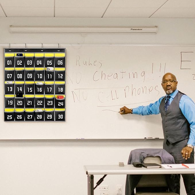 - 【Cell Phone Pocket Chart for Classroom】Used as classroom phone storage and calculator storage. Perfectly to hold students cell phone, calculators in class. Let students focus more on studying, say goodbye to students playing with their phones in class and create an efficient classroom.