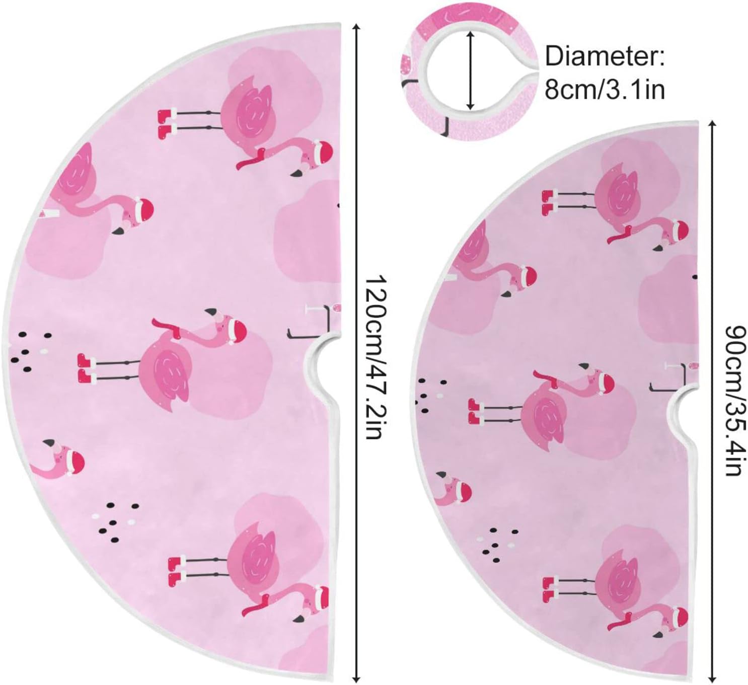 Christmas Flamingo Champagne Tree Skirt, Seasonal Tree Mat Holiday Party Supplies Ornaments Indoor Outdoor Decorations for Tabletop Trees 47.2 Inches