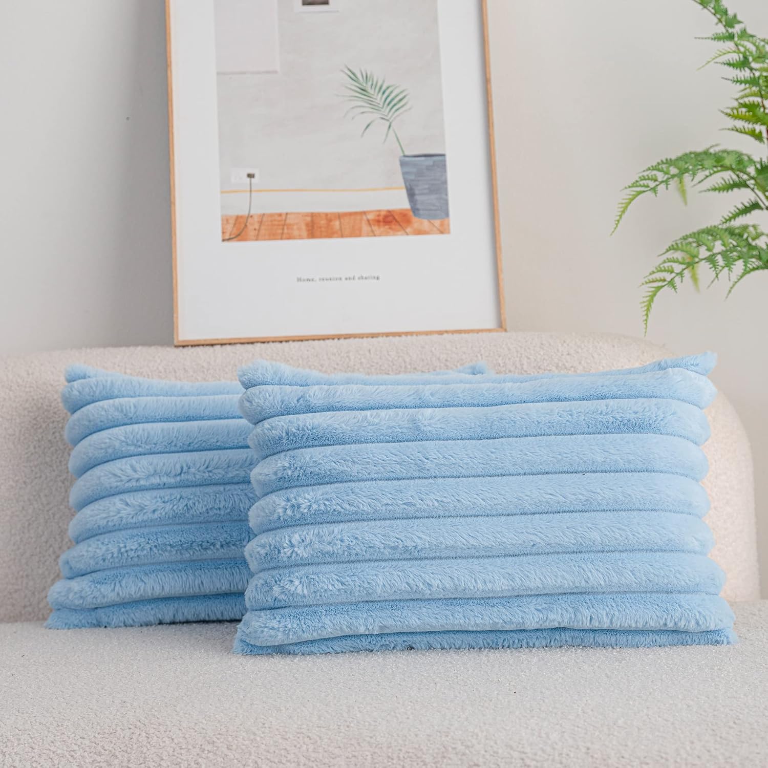 DEELAND Pack of 2,Double-Sided Faux Fur Plush Decorative Throw Pillow Covers Fuzzy Striped Soft Pillowcase Cushion Covers for Sofa Couch Bedroom Lightblue 12x20 inch