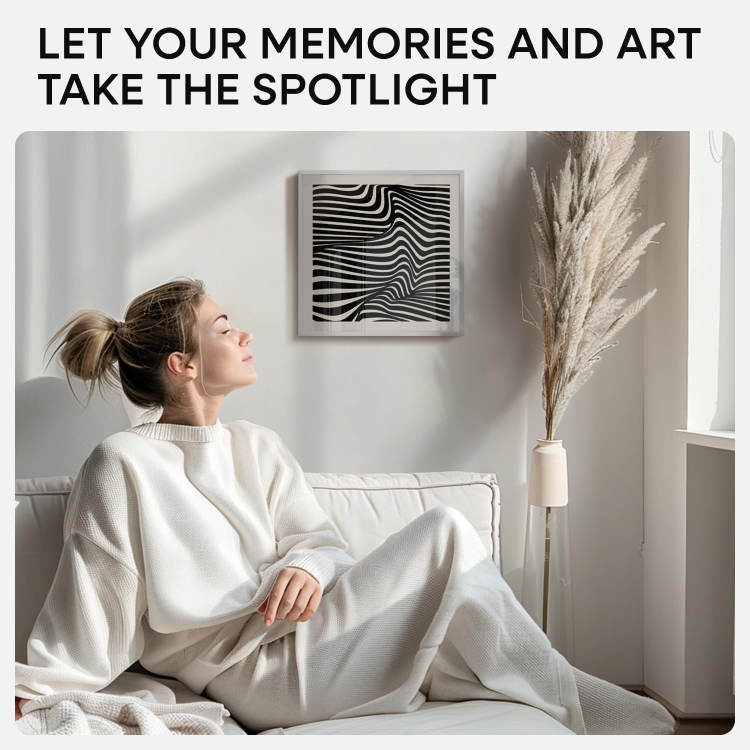 Homeforia 12x12 Silver Frame, High End Metal 12 x 12 Square Picture Frame with Mat 10 x 10 Photo, 12x12 Poster Frames Matted to 10x10 Print, 12 by 12 Hanging Frames, Tempered Glass, Wall Kit, Set of 1