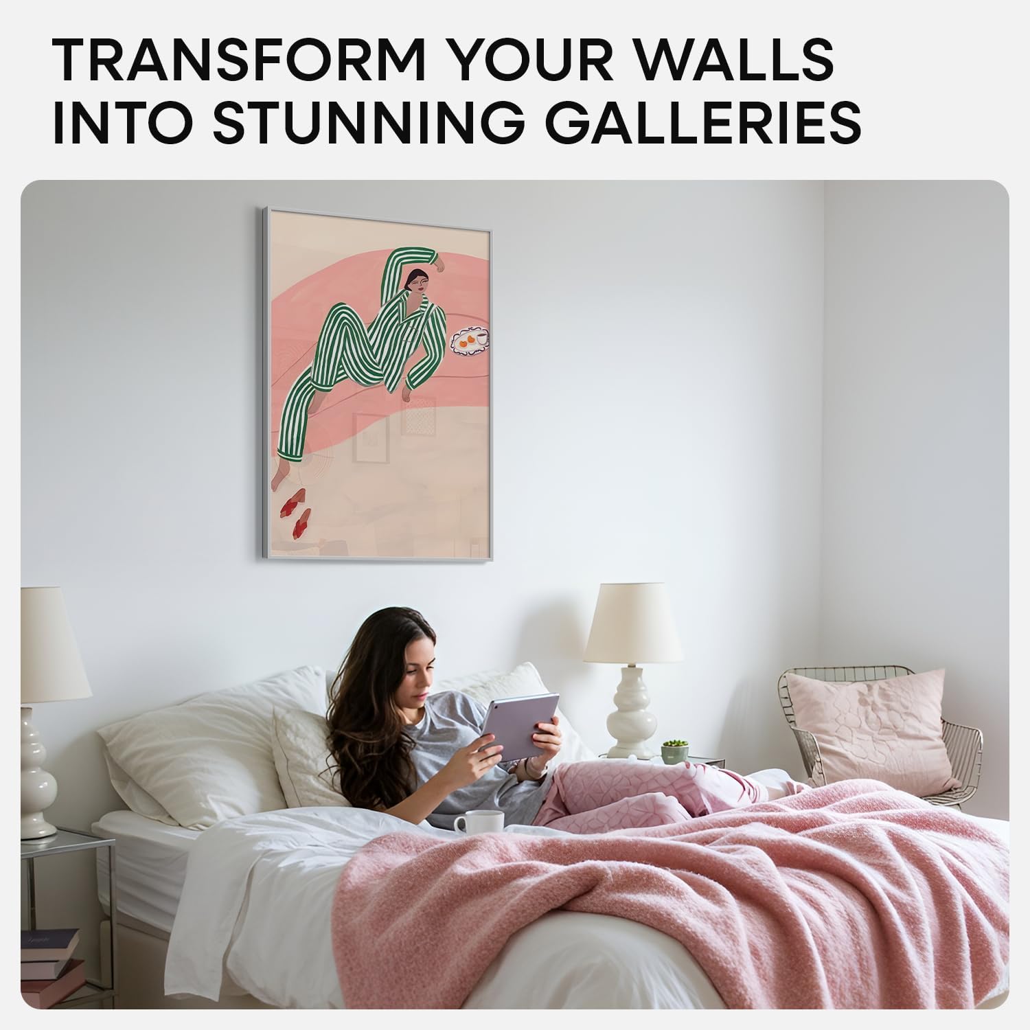 Homeforia Poster Frame Silver 20x30, High End Metal 20 x 30 Picture Frame with Mat 16 x 24 for Photo, 20x30 Silver Frames Matted to 16x24 Print, 30x20 Hanging Frame, Tempered Glass, Wall Kit, Set of 1