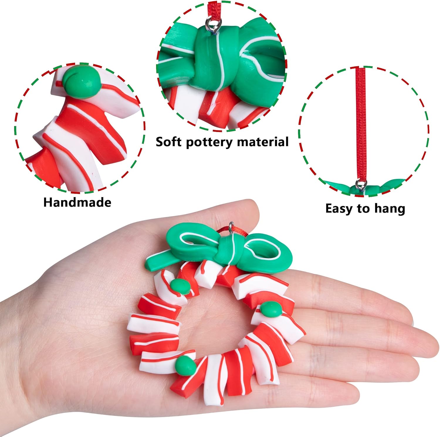 - Easy to hang:Every Christmas lollipop polymer clay ornament is equipped with a red ribbon,light weight, you can easily hang them where you want to decorate.Bring you a different visual experience.