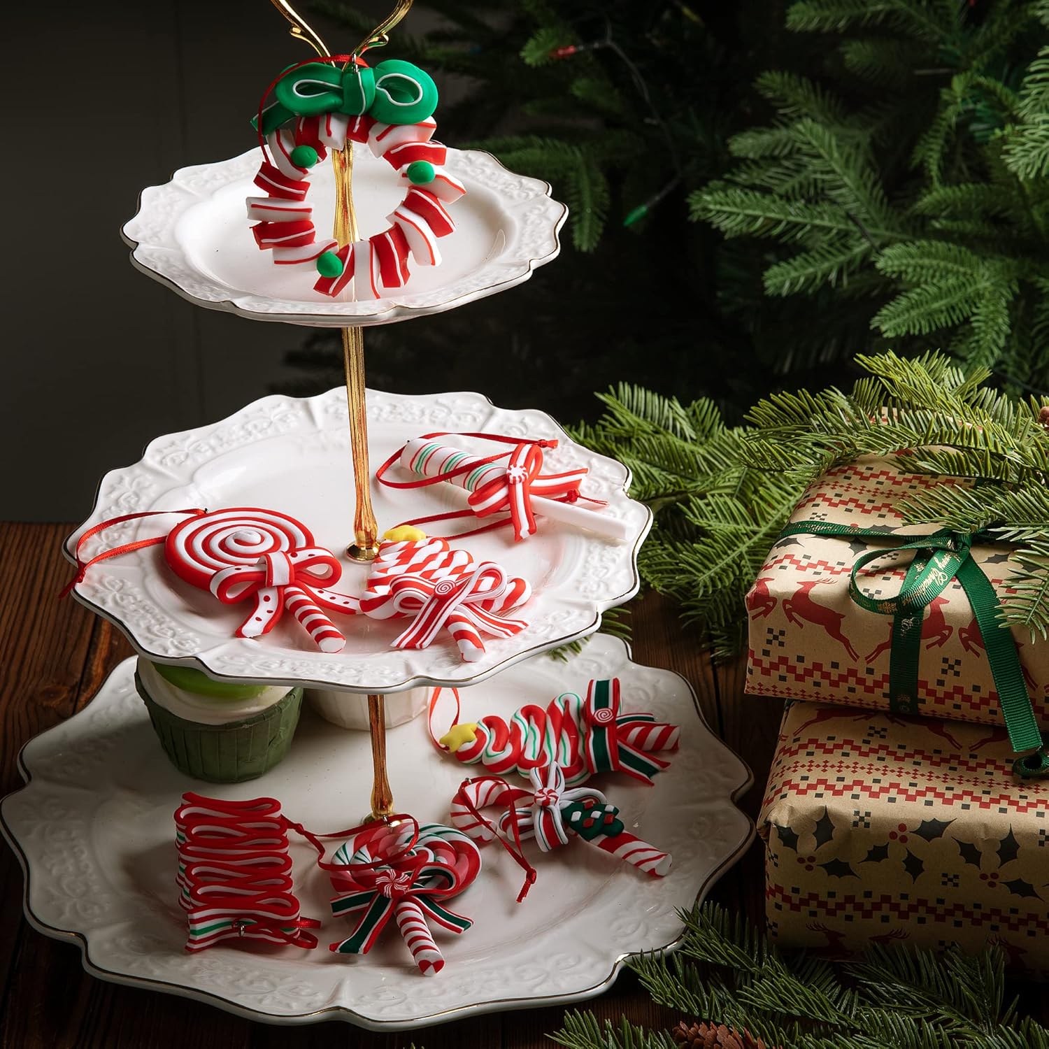 - Material :These Christmas candy ornaments are mainly made of polymer clay,reliable to use, not easy to fade,can use for a long time.If you smell the product when you open it, don’t worry, it will disappear after a period of time.