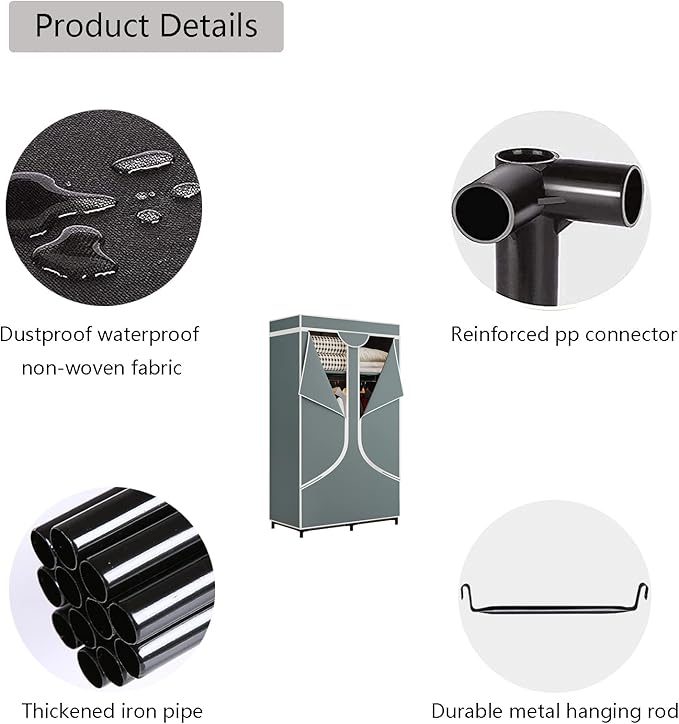 - 【Dustproof,Resistant to Dirt】High quality non-woven fabric cover,so that your clothes away from dust.Dark colored cover can ensure the practicality of the wardrobe,so it can be used for many years.