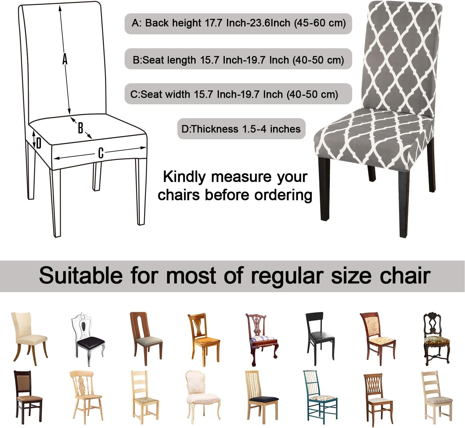 - 【High Quality of Chair Cover】- This dining chair slipcovers are made of stretchy spandex fabric, soft, comfortable and wrinkle resistant, no ironing required; Stretchable Material,stretch that recovers quickly,secure fit with sewn-in elastic hem.