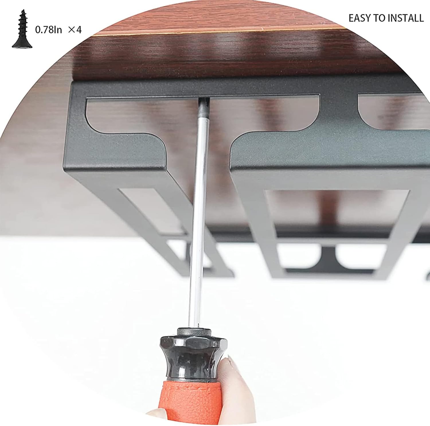 - Easy To Install - The glass wine holder comes with 4 self-locking screw hardware, it only takes 2 minutes to install and organize your goblets collection, helping your wine glasses fit under the cabinet.