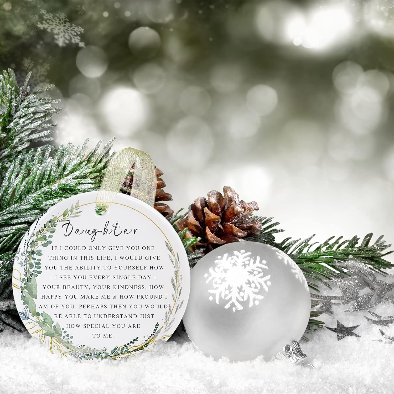 Daughter Ornaments 2025 Daughter Christmas Ornament Xmas Forever Ornament Best Ever Gift Double-Sided Printing Ceramic with Gift Box&Ribbon (2.9"
