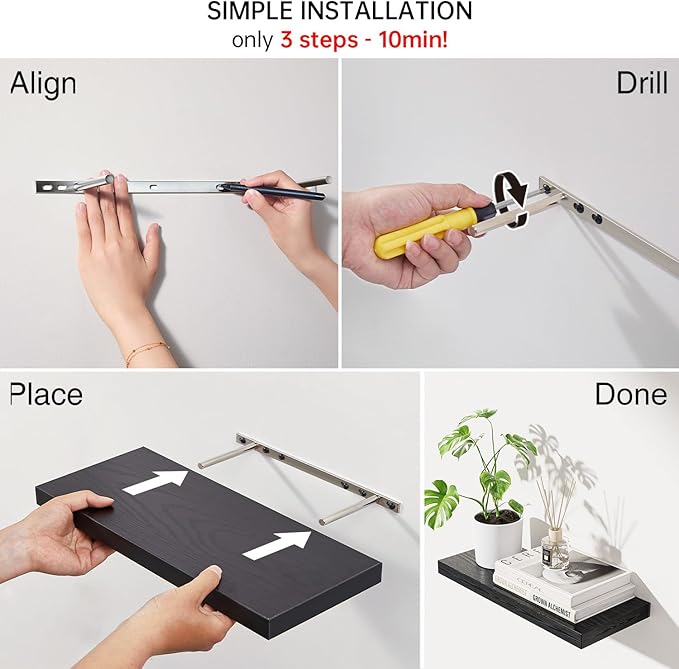 - ๐๐ญ๐ซ๐จ๐ง๐ ๐๐จ๐๐ ๐๐๐ฉ๐๐๐ข๐ญ๐ฒ โ Made from ๐๐ฎ๐ซ๐๐๐ฅ๐ ๐๐ง๐ ๐ข๐ง๐๐๐ซ๐๐ ๐ฐ๐จ๐จ๐ and reinforced with sturdy brackets, each shelf ๐ฌ๐ฎ๐ฉ๐ฉ๐จ๐ซ๐ญ๐ฌ ๐ฎ๐ฉ ๐ญ๐จ ๐๐ ๐ฅ๐๐ฌ, making them ideal for books, plants, toiletries, or decor