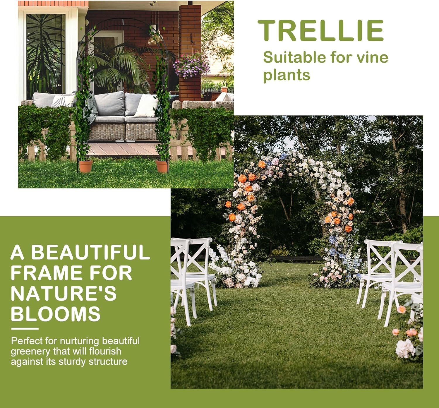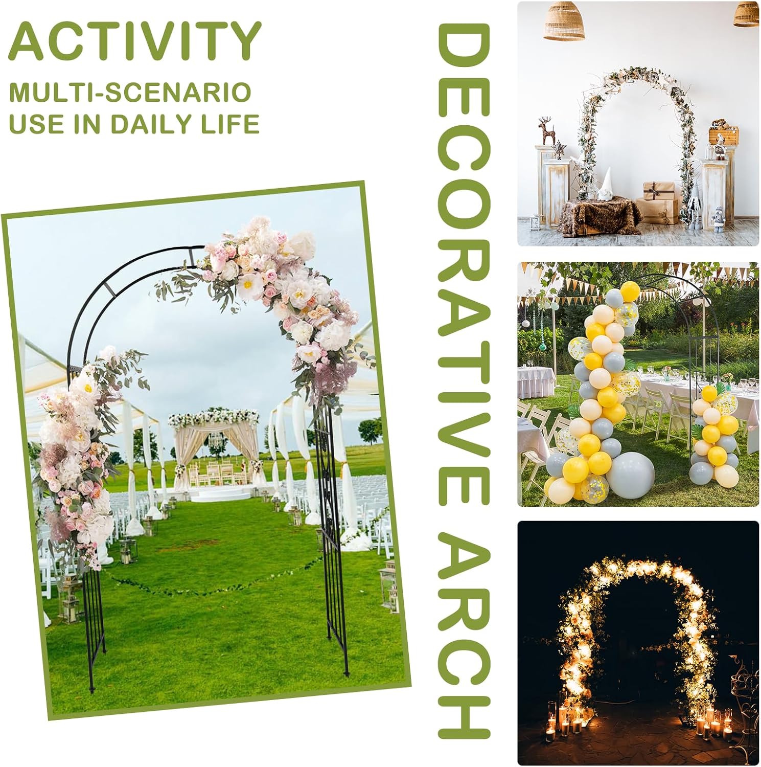 - 【GREAT FOR EVENTS】This walkway trellis is also great for weddings, anniversaries, birthday party, Christmas or other important occasions decoration. Decorate it with balloons, leaves, party banners, tulle, LED fairy lights or anything else you want, makes your events classic and fabulous