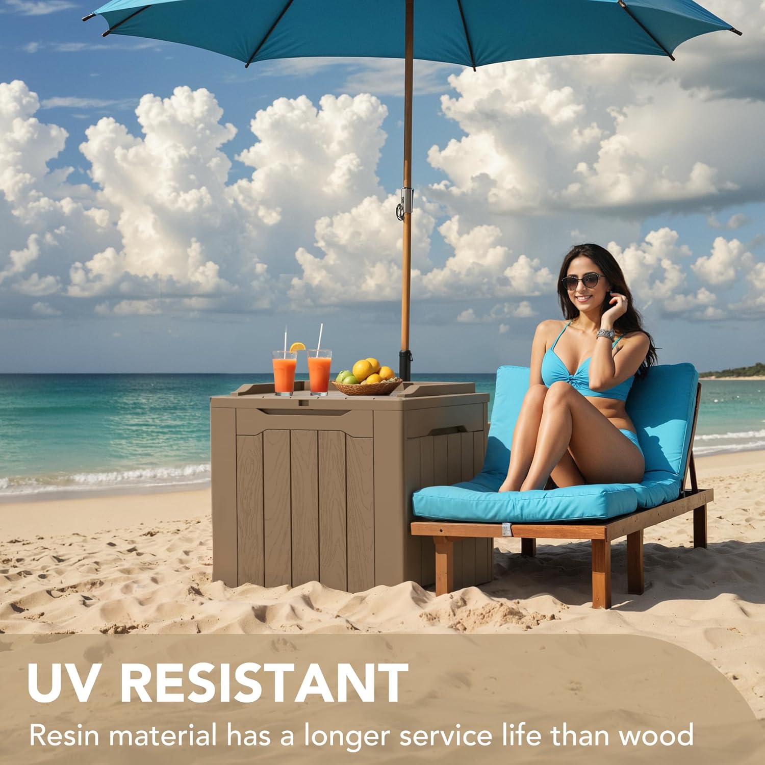 Devoko 30 Gallon Resin Deck Box Outdoor Indoor Waterproof Storage Box for Patio Furniture Pool Accessories Storage for Cushion Garden Tools (30 Gallon, Light Brown)