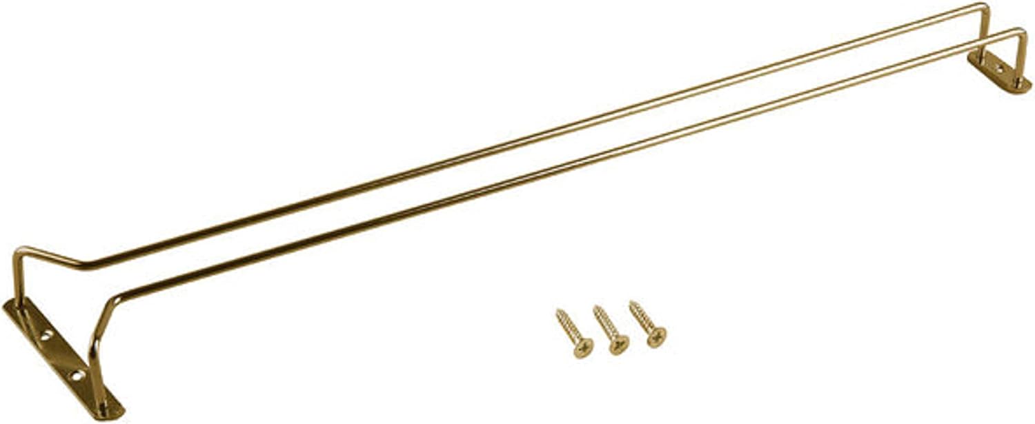 - This strong metal rack features a slim design that is easy to clean. Ideal for any bar space, this rack helps keep your counters clear of glassware, and the elegant brass plated finish is sure to enhance any setting.