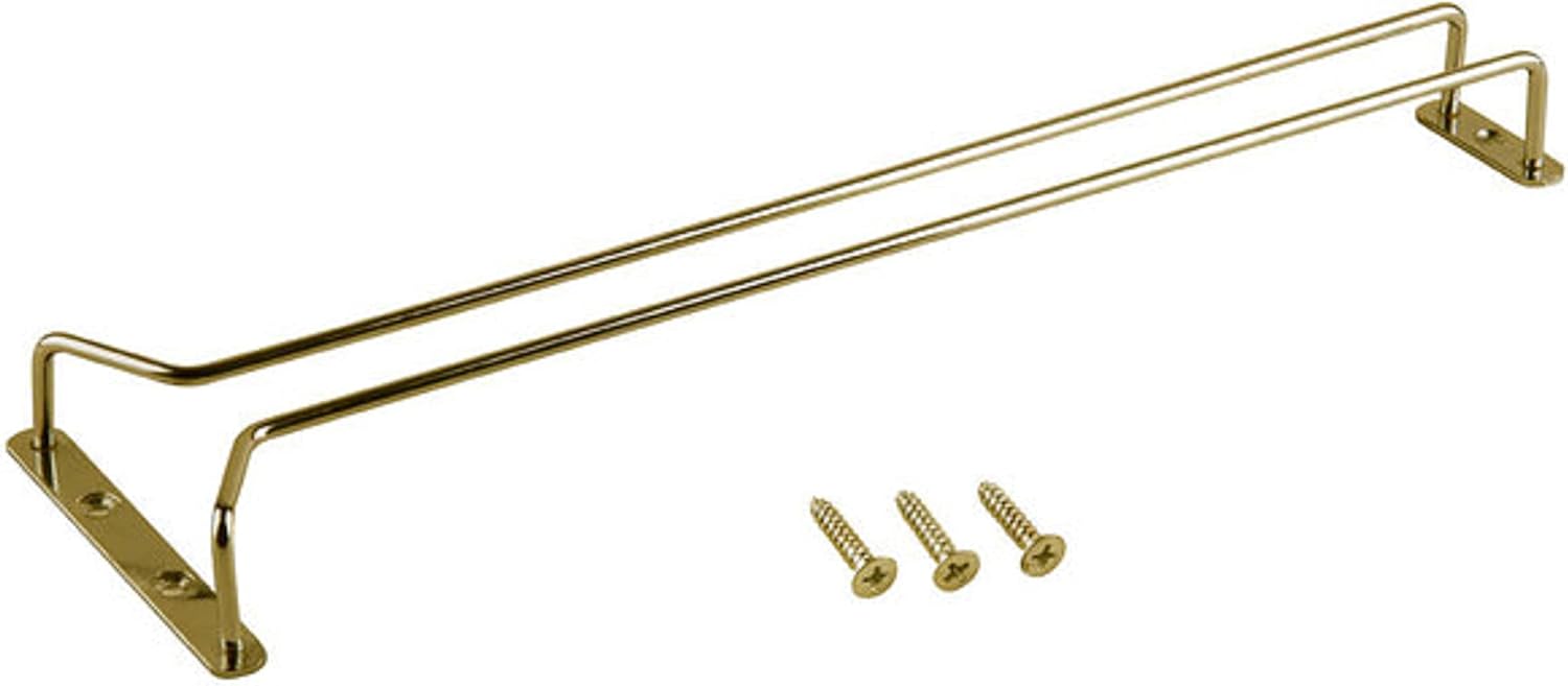 - This strong metal rack features a slim design that is easy to clean. Ideal for any bar space, this rack helps keep your counters clear of glassware, and the elegant brass plated finish is sure to enhance any setting.