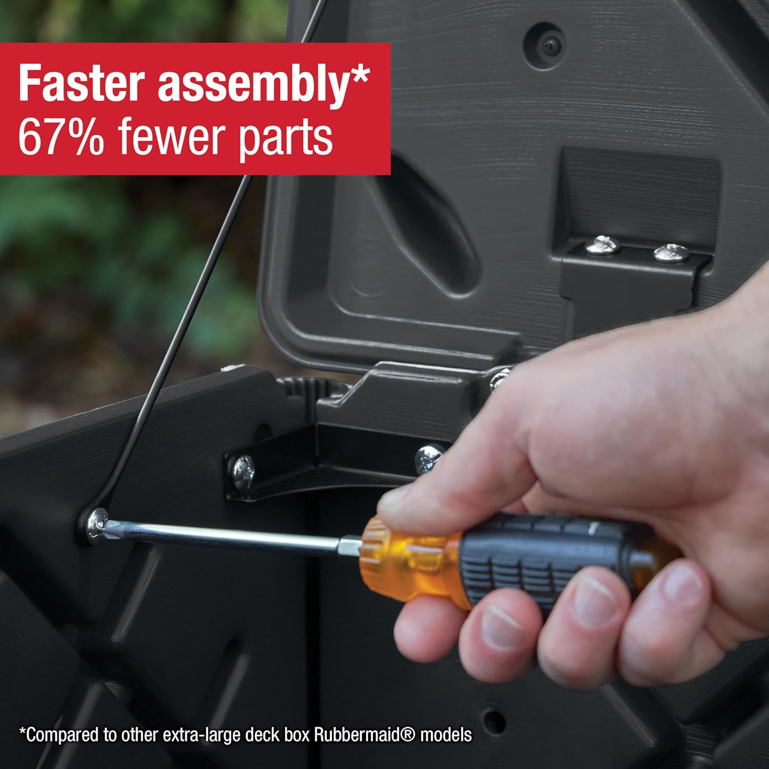 Rubbermaid Extra Large Resin Outdoor Storage Deck Box (134 Gal), Weather Resistant, Black, Deck Organization for Home/Backyard/Pool Chemicals/Toys/Garden Tools/Porch/Patio Cushions