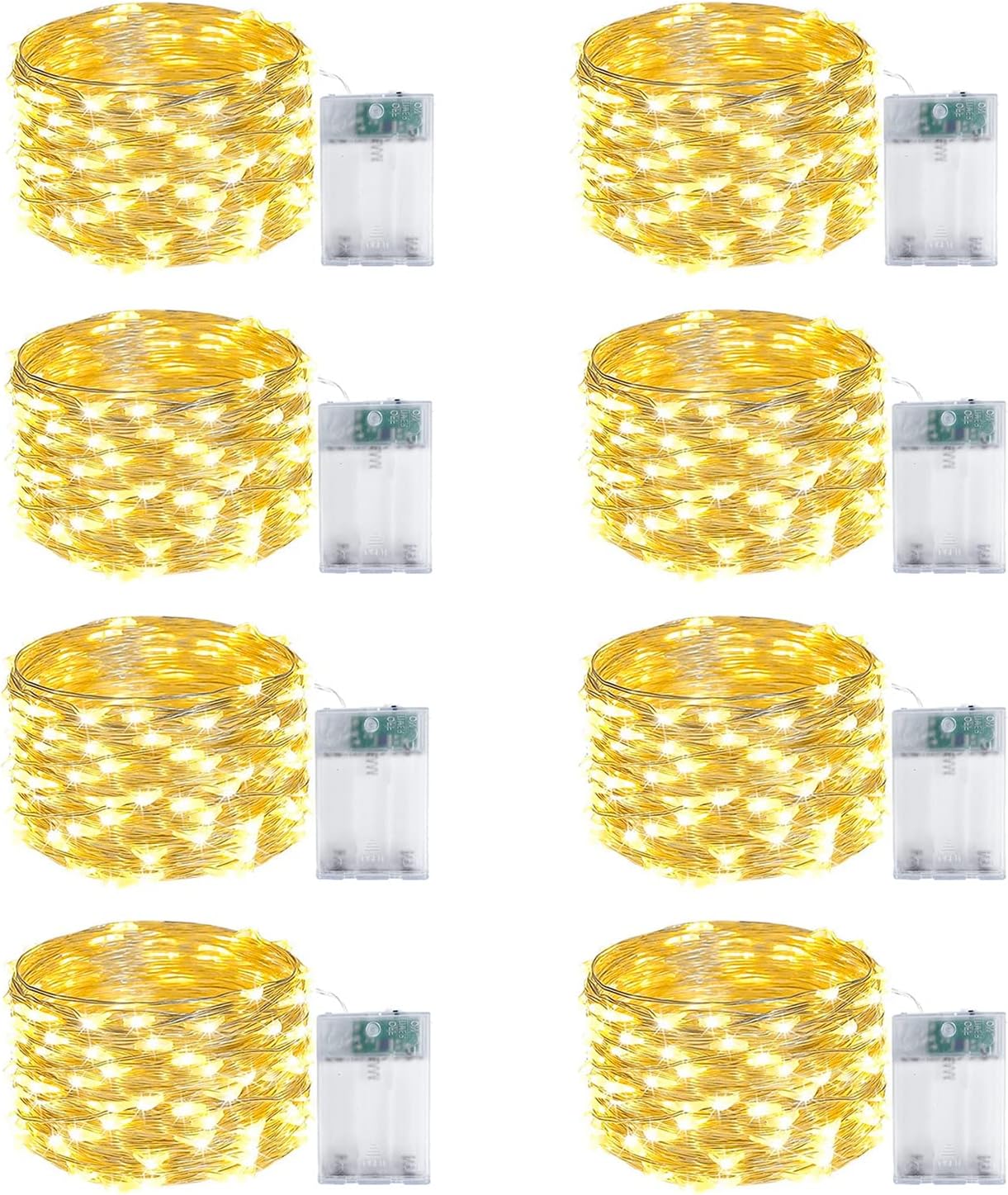 - Ultra-Bright and Durable Battery Fairy Lights: Designed with ultra-bright LEDs and durable silver wire, these battery-operated lights are built to last and make an excellent choice for decorating bedrooms, centerpieces, balconies, decks, and porches. Each set includes 8 strands of lights, each 16ft long with 50 LEDs, powered by 3 AA batteries (not included)