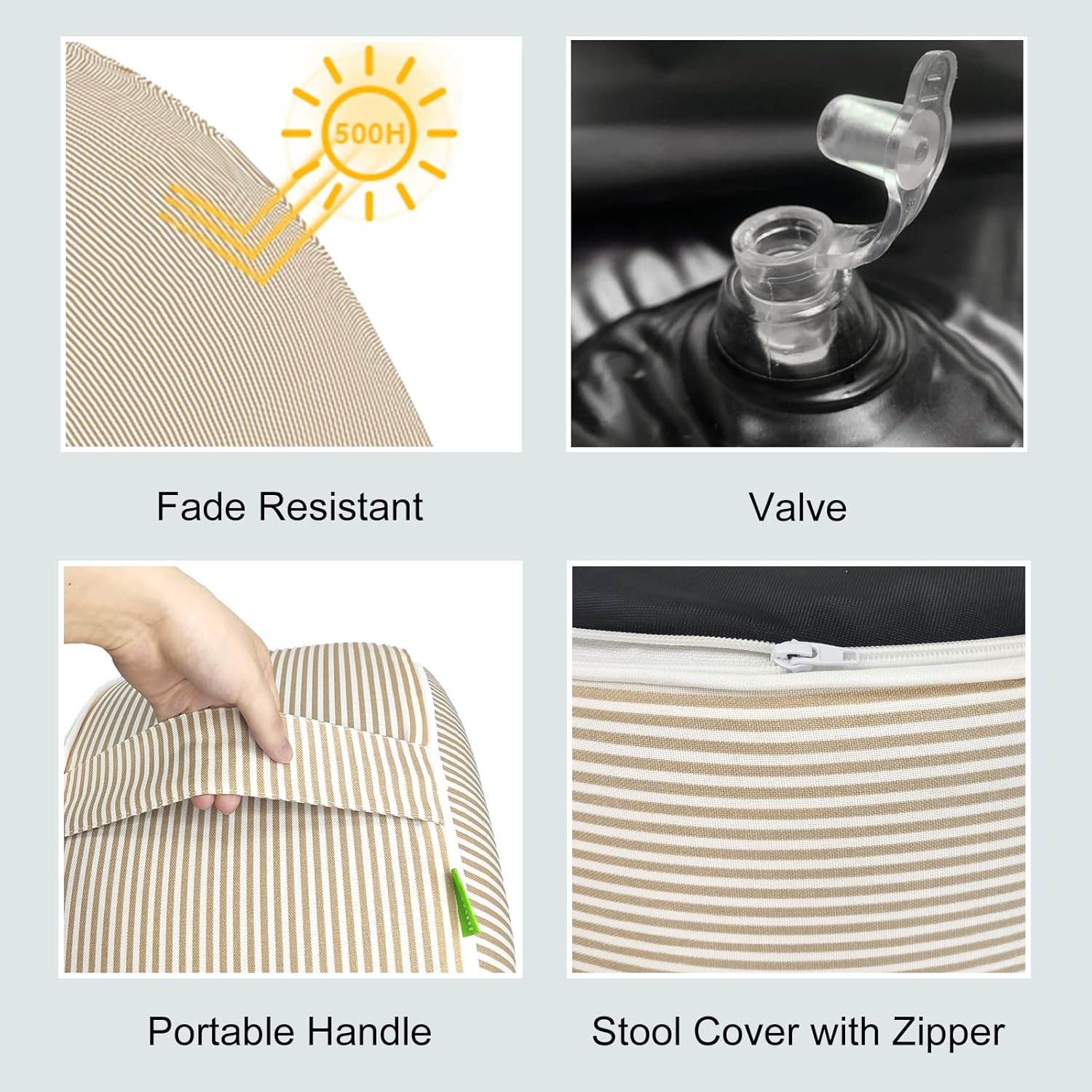 LVTXIII Inflatable Stool Ottoman Footrest with Handle, All Weather Foot Rest, Indoor or Outdoor Use for Home Patio Garden and Camping, D21 x H9, Stripe Beige