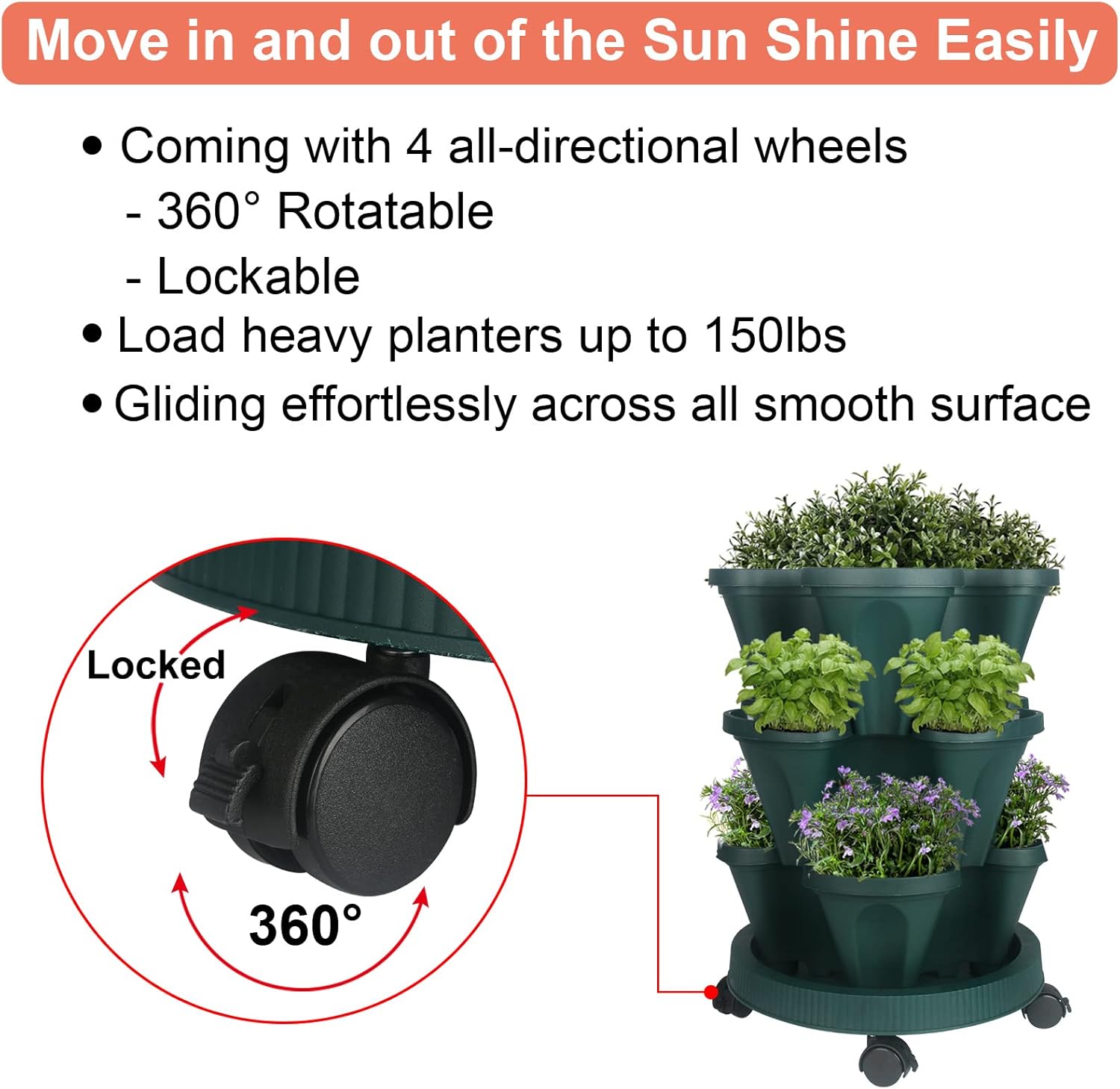 - STACKABLE PLANTER - Stack the planters to the height you desire.