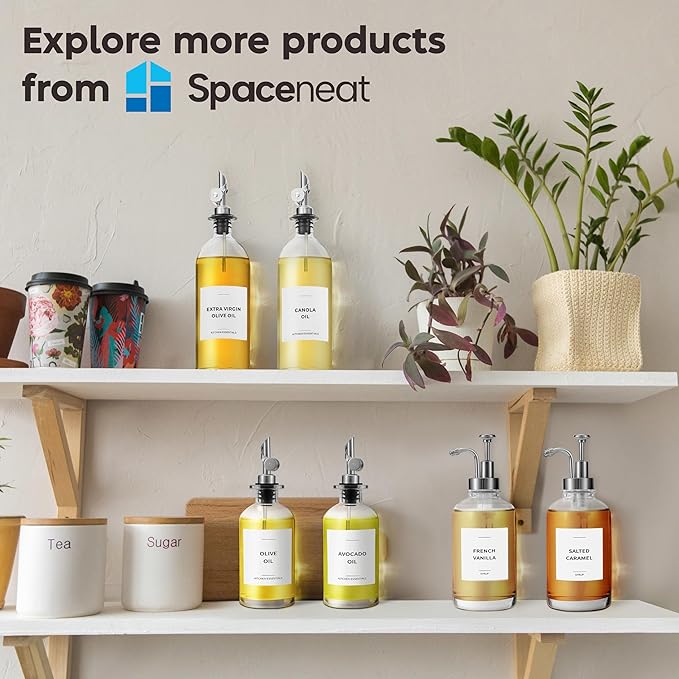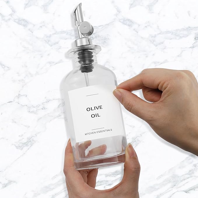 - PVC Sticker Labels Included — Enjoy 55 waterproof and oil proof labels made from PVC that include everything from cooking oils to sauces, wines, coffee syrups and more. Customize your dispensers and fill with your favorite cooking essentials.