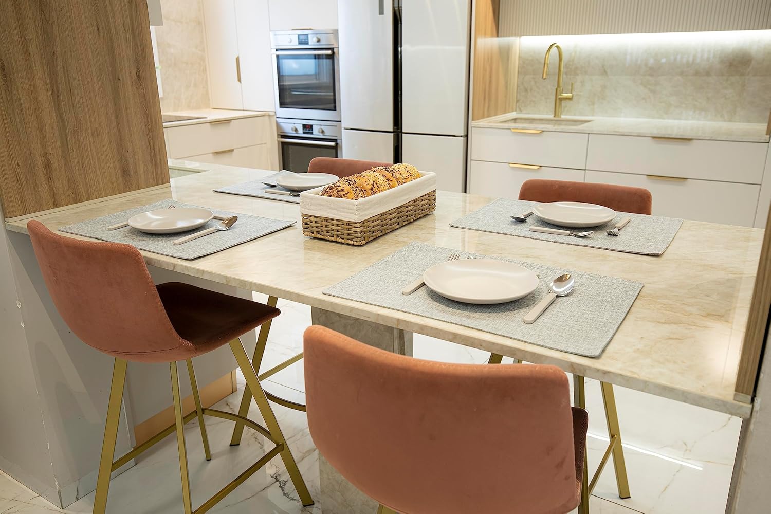 - Heat-Resistant: This amazing placemat set is detail-oriented and durable. Our placemat also aids in keeping the kitchen table clean for a long time. Buy this premium placemat set for the kitchen confidently and protect your indoor surfaces. Each placemat can be used in your kitchens, cafes, restaurants, and on any surface, making your table more beautiful. It also aids in keeping the kitchen coffee table or dining table clean for a long time.