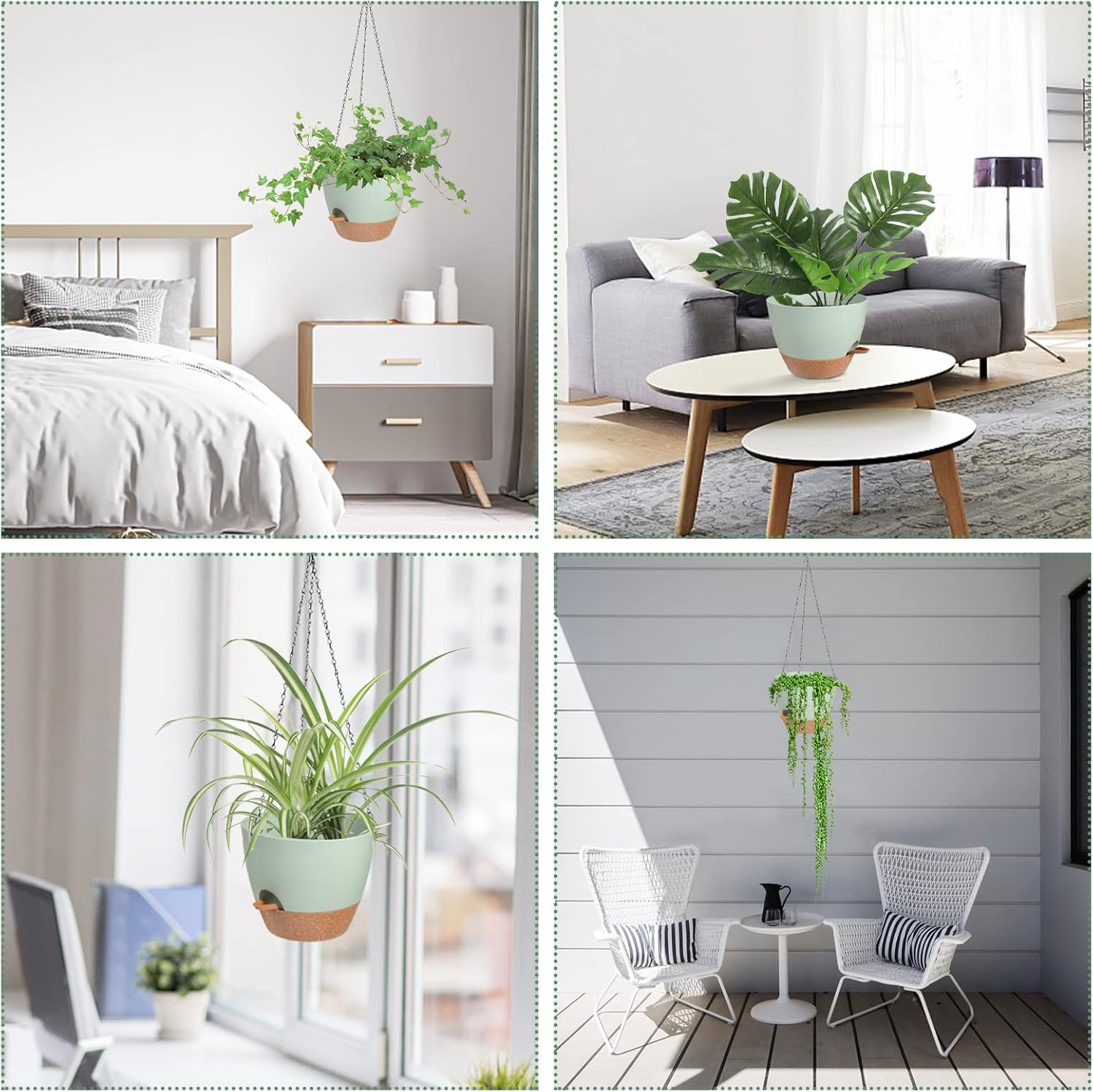 - Versatile Usage: The indoor/outdoor hanging planters are perfect for patios, gardens, balconies, and indoor spaces to bring a touch of greenery.