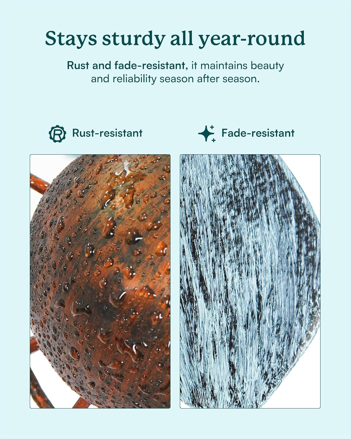 - Suitable for All Seasons: This yard art wind spinners can perfectly integrate with your amazing garden,add a touch of ambience to your patio, lawn. Suitable for all seasons. Repel birds for spring plants. Bring a touch of coolness in the hot summer. Make the autumn garden no longer lonely. Stand out beautifully against a snowy landscape