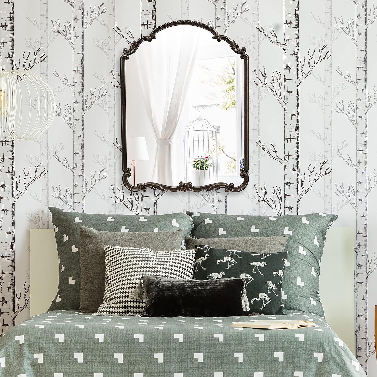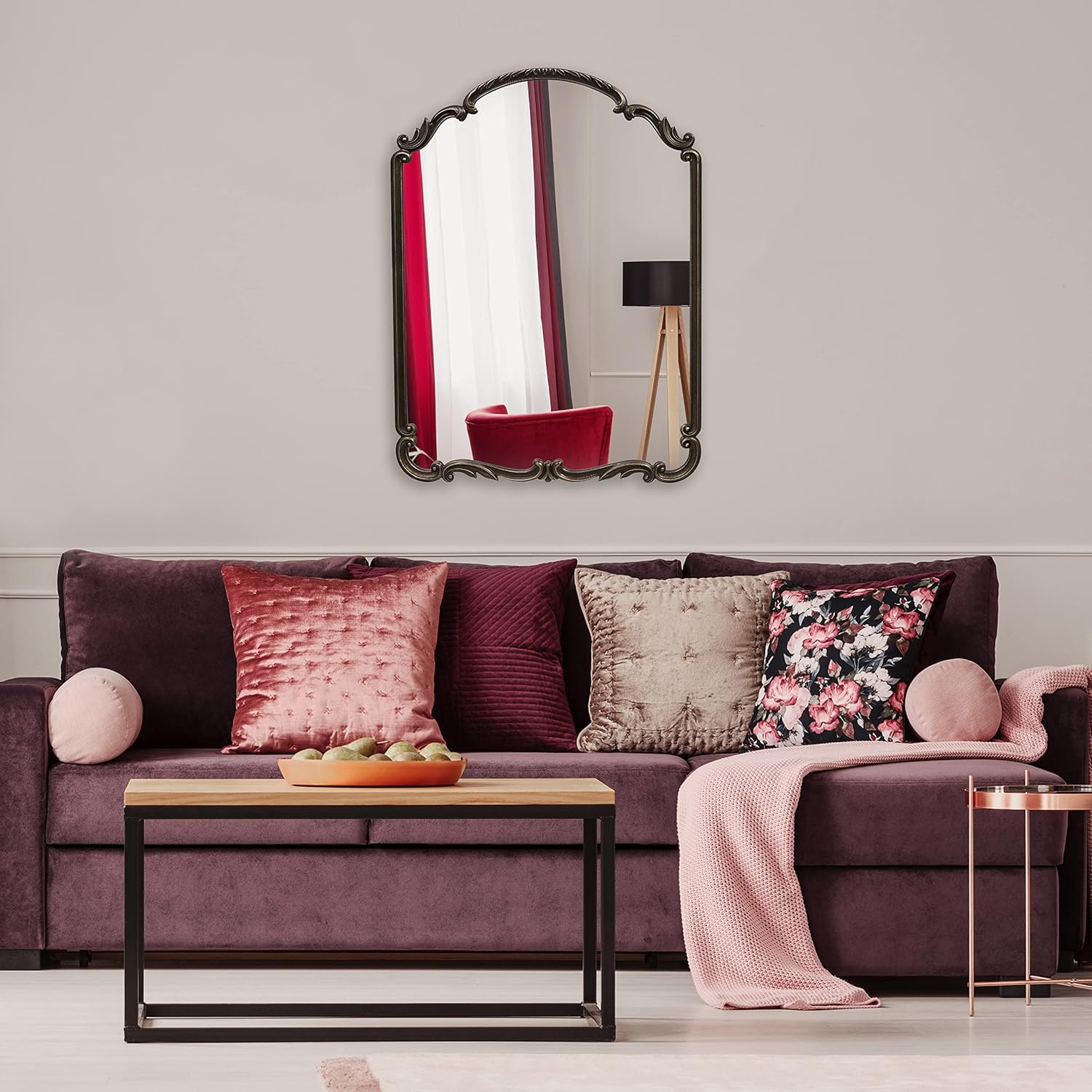 English Estate Carved Arch Wood Wall Mirror, Mirror for Entryway, Living Room, Bathroom, Antique Black, 22x30