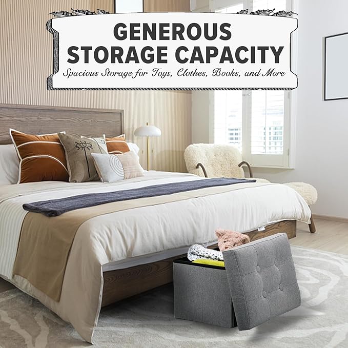 - DECORATIVE MULTI-PURPOSE LINEN OTTOMAN – Our linen fabric storage ottoman are a stylish, practical alternative to other boring storage solutions. Not only will our ottoman help you get organized, the pure design, sophisticated shape, and neutral colors will complement any decor in any room for all your storage needs. Use them in the playroom, bedroom, living room, & more