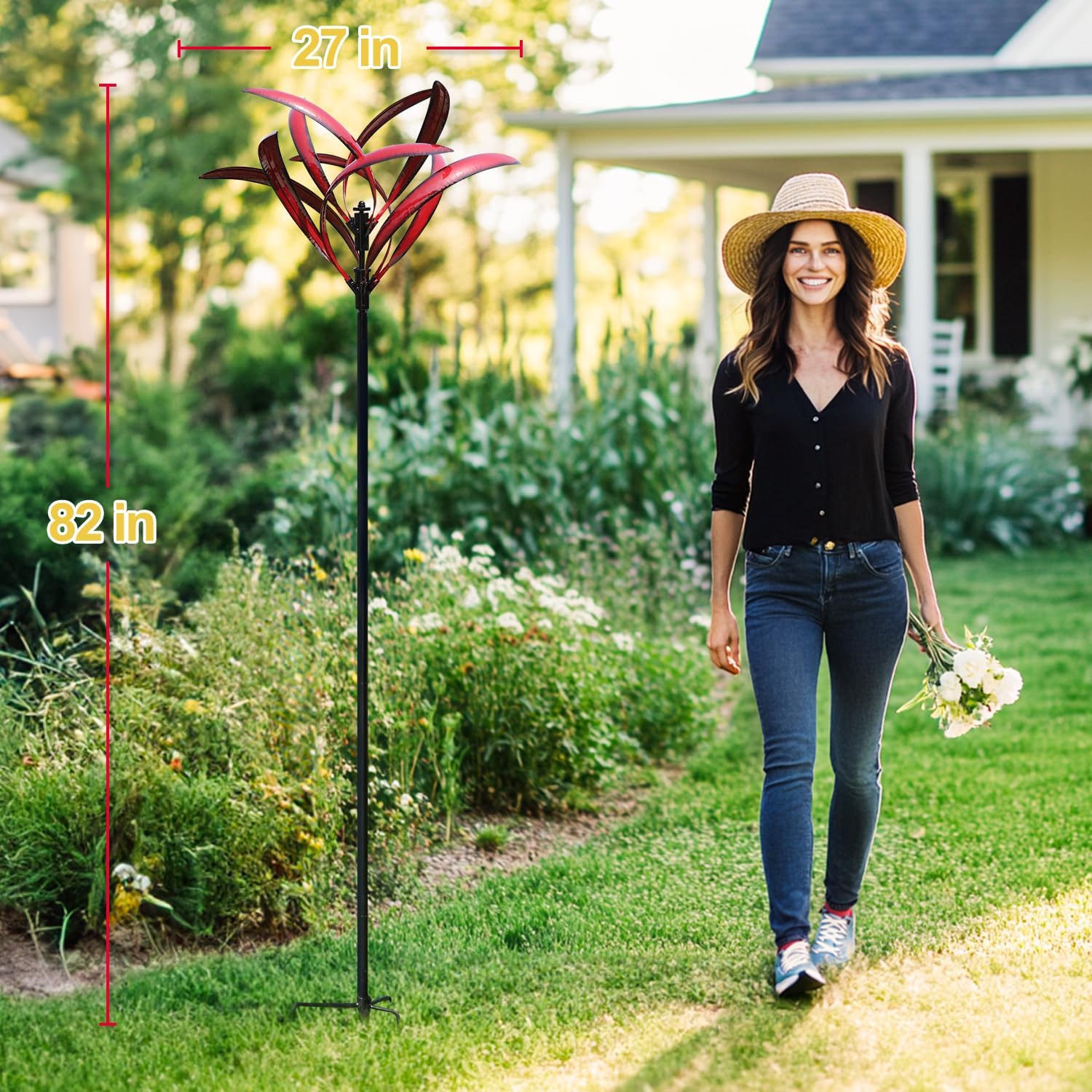 LimeHill Wind Spinner for Garden and Yard - Large Metal Kinetic Wind Sculptures Yard Art Outdoor (Burgundy 2)