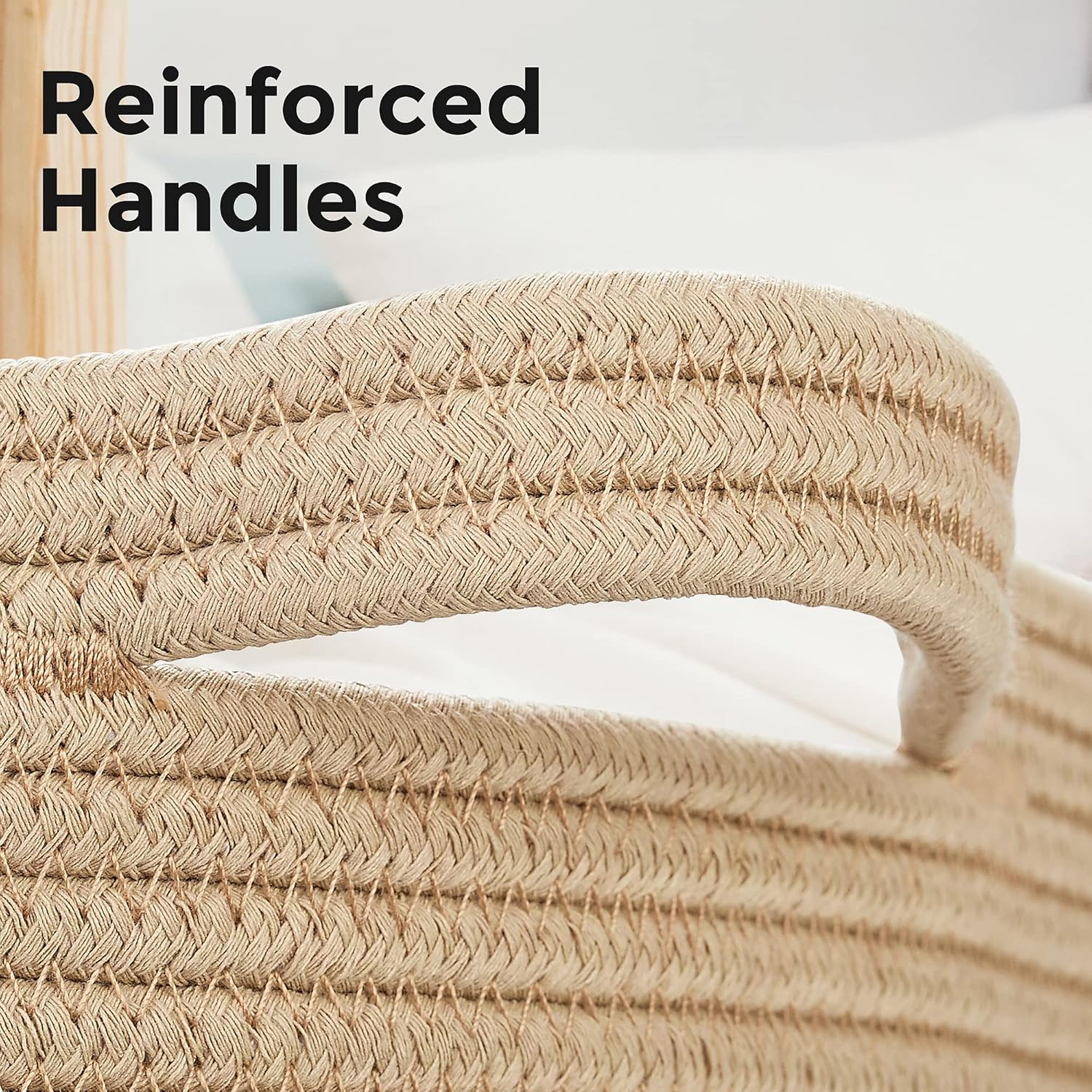 - Sturdy and Long-Lasting: The Ravinte blanket basket features reinforced handles, allowing easy movement and versatile use in various spaces. Handmade from resilient cotton rope, this basket provides reliable storage for years of continuous use