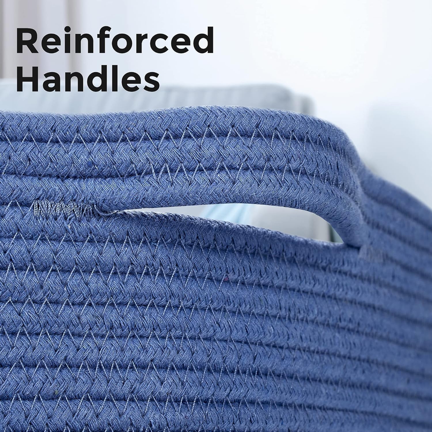 Ravinte Blanket Basket - 20"x 20"x 13" Cotton Rope Basket for Living Room, Baby Toy Storage Basket, Large Woven Laundry Basket (Blue)