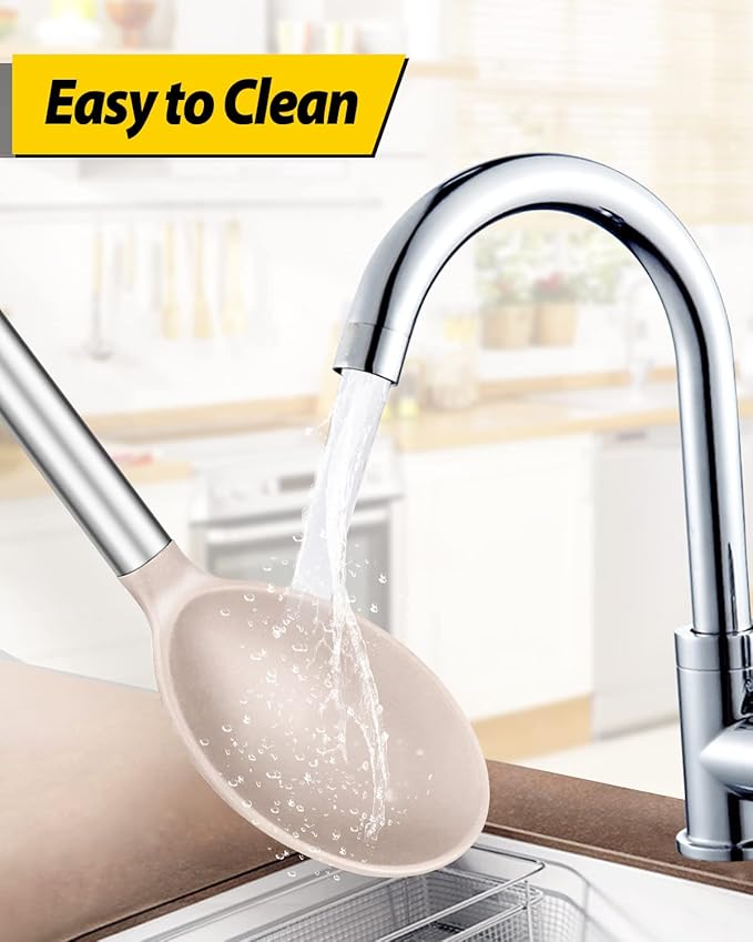 - More Safe and Healthy : Our silicone spoons are made of food-grade silicone, free of BPA;Even at high temperatures, there is no need to worry about melting or deforming;And the soft silicone head won't scratch the coating, it can better protect your pot