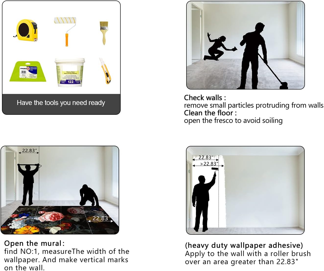 - It's easy to install: at the bottom of each mural we have a numbered sequence, You can refer to the instructions we provided and the main picture 6-7,just match the numbers and you'll be amazed!