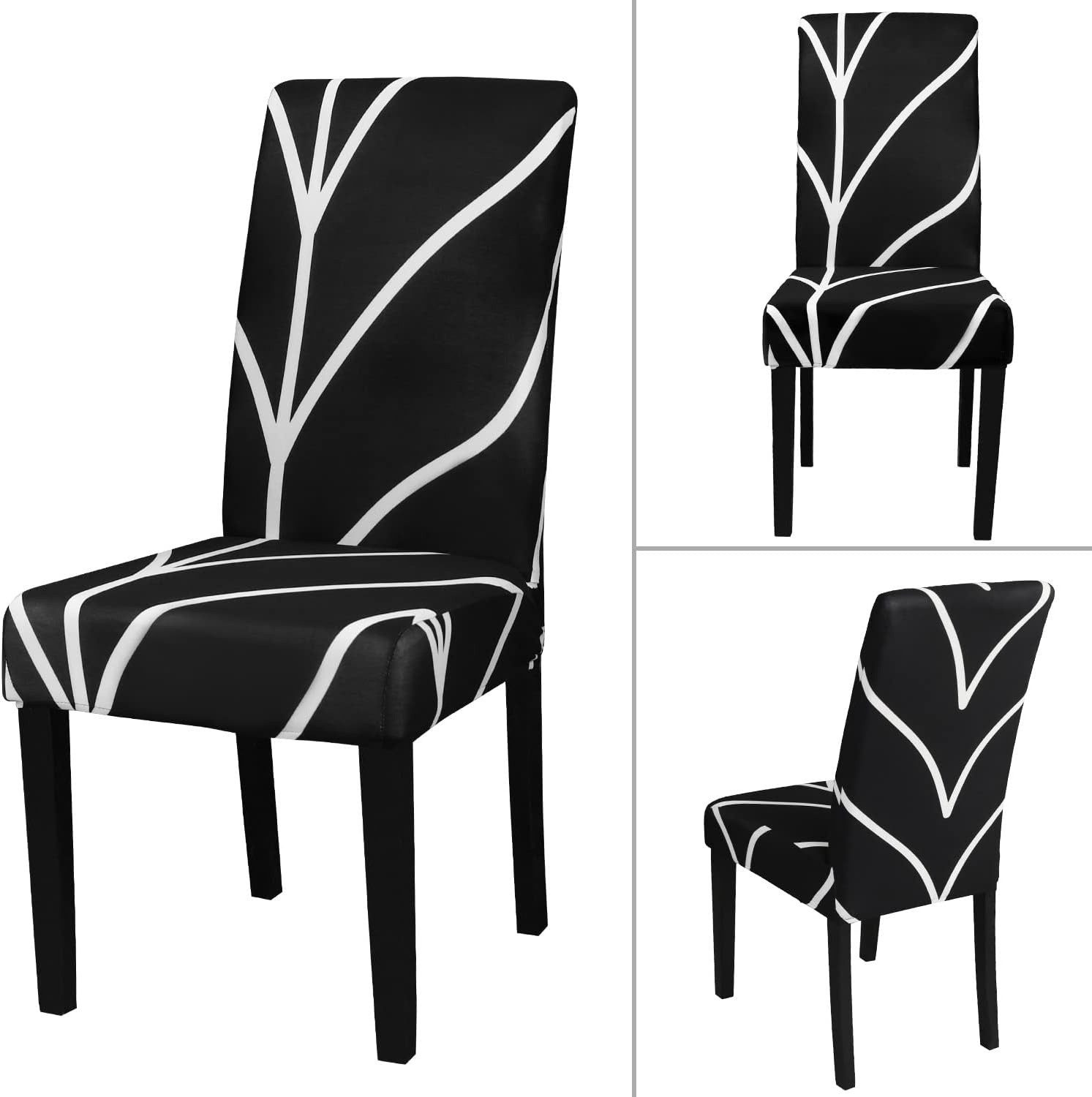 JQinHome Black Chair Covers for Dining Room Set of 4, High Stretch Removable Washable Parsons Chair Slipcover for Home Party Hotel Wedding Ceremony (4PCS, Geometric)