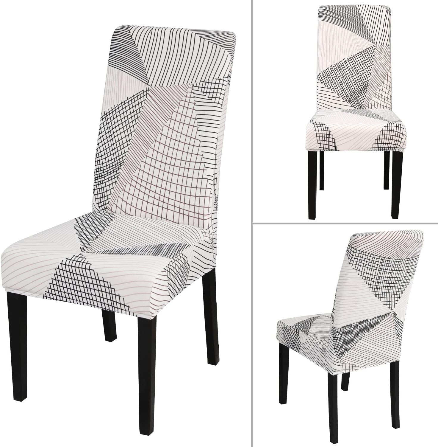 JQinHome White Chair Covers for Dining Room Set of 6, High Stretch Removable Washable Parsons Chair Slipcover for Home Party Hotel Wedding Ceremony (6PCS, Geometric)
