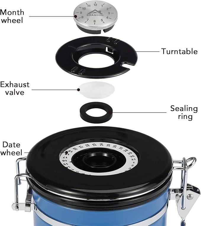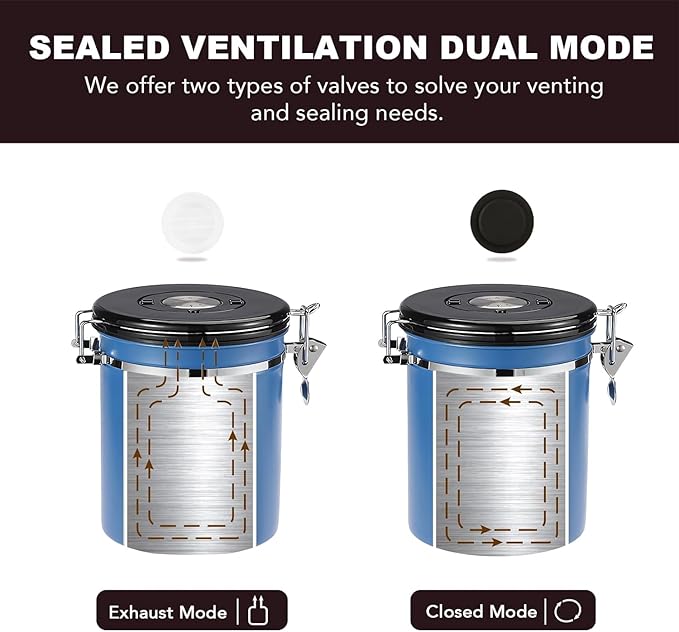 - 【TWO EXHAUST MODES】The canister features a CO₂ valve system and a silicone seal to lock in freshness and keep out moisture and air. A silicone gasket around the edge of the lid ensures an airtight seal when the lid is closed. Storing your coffee beans in this well-designed canister helps extend their freshness and ensures that every cup, even weeks later, tastes as good as the first.