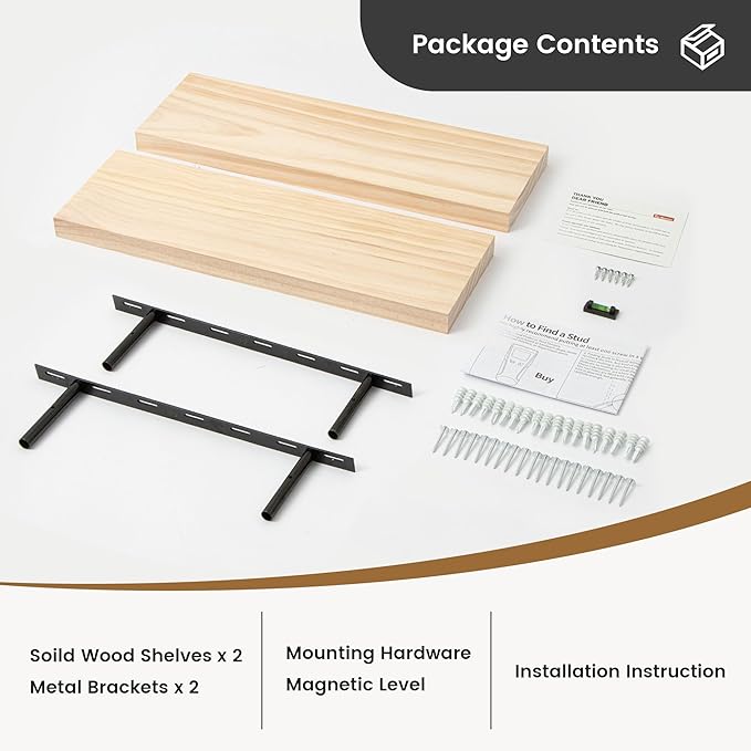 - Easy to Install - We provides everything you need for a hassle-free installation. Inside, you will find a level, screws for the wall, drywall anchors, screws to tighten the shelf, two metal brackets, and two exquisite handcrafted pine shelves. A detailed installation guide accompanies these components, ensuring a smooth process. Please contact us at Amazon or Fun Memories with any questions or concerns. Your satisfaction is important to us!