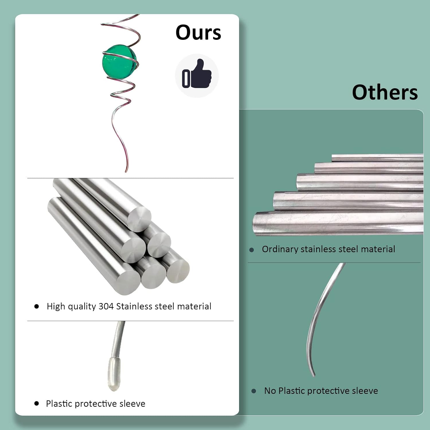 - 【High Quality】11inch height spiral tail made of #304 stainless steel wire,the 2inch colored ball made of pure solid color glass material,have good weather resistant,no fading under sunshine.Better quality than iron material with nickle plating and painting color glass ball in the market.