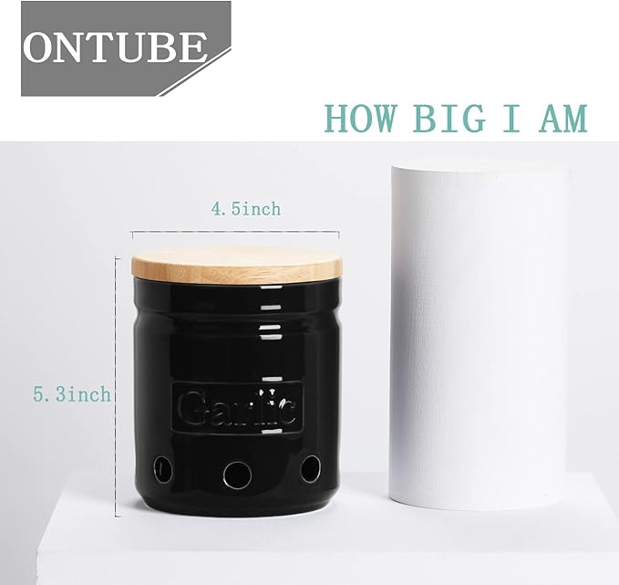 - HUMANIZED DESIGN : ONTUBE Garlic Keeper's size is 4.5"Lx4.5"Wx5.4"H which can easily hold 3 to 4 heads of normal size garlic. Because it is deep enough, it can even hold 2 potatoes