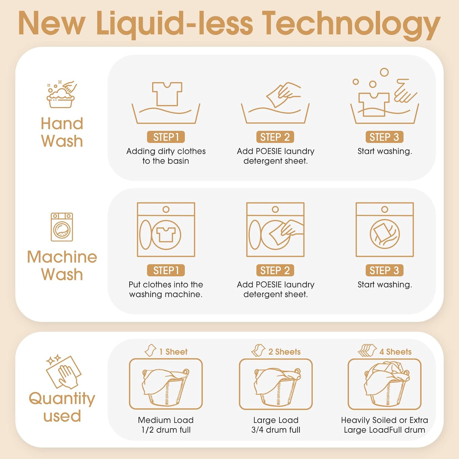 - Hassle-Free Cleaning - Our liquidfree detergent sheets are designed to make laundry day a breeze. No more measuring or pouring, just toss in the sheet and let it do the work. Bringing you the perfect laundry experience