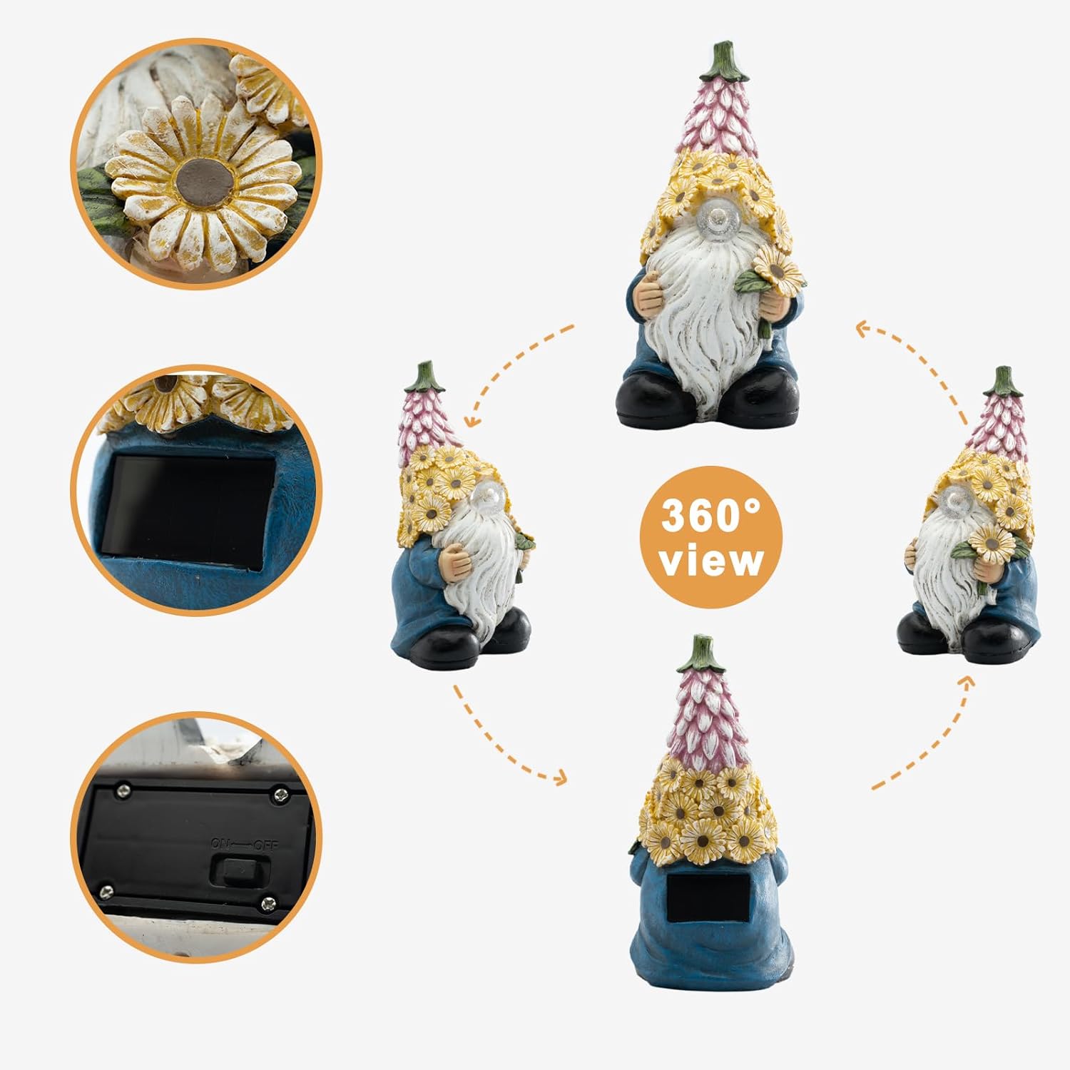 - 🌻【WEATHER-RESISTANT AND DURABLE】Made of high-quality resin, this solar gnome statue is crafted to withstand harsh elements and last for years. Designed with a sturdy base, providing optimal stability for outdoor use.